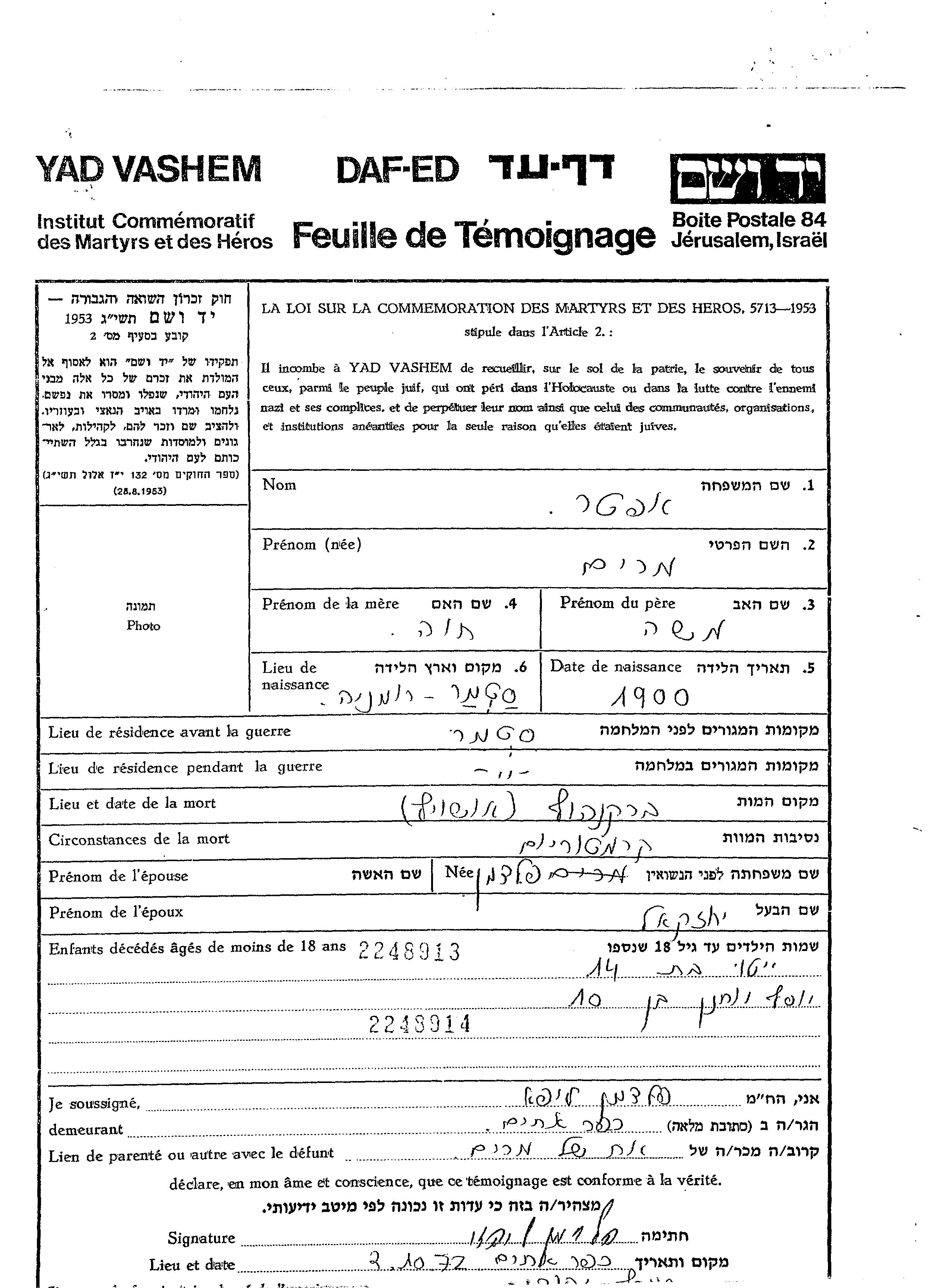 חיפוש שם מוסר דף העד. חיפוש לפי כל שם פרטי, כולל כינוי או שם חיבה