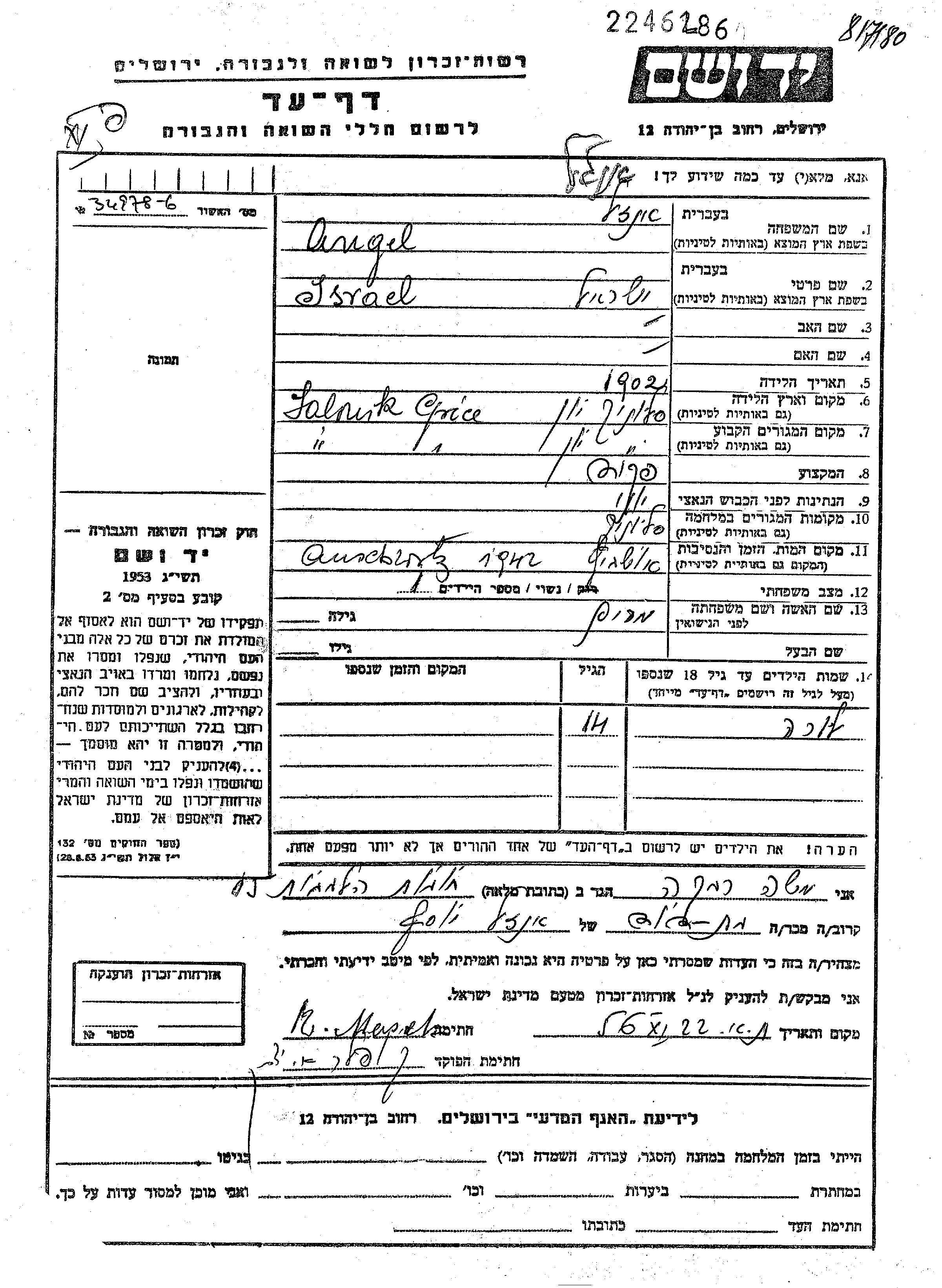 יד ושם - המפעל להנצחת השמות בדפי עד