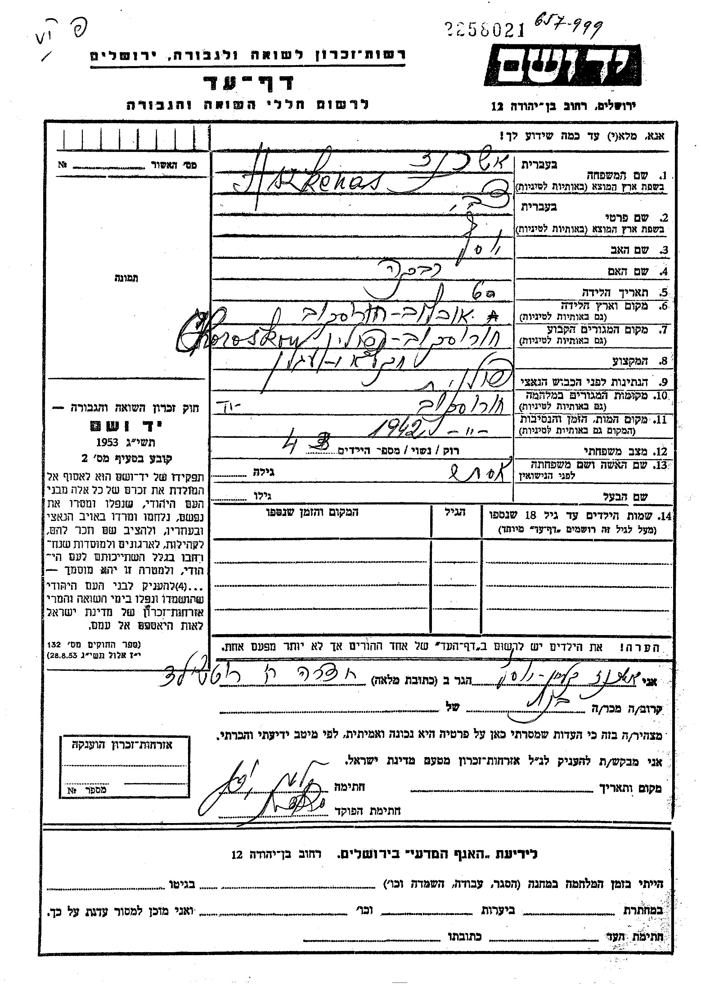 צבי Aszkenas נולד בChorostkow שבפולין בשנת 1882 ליוסף ורבקה. הוא היה חקלאי ונשוי לאסתר. לפני מלחמת העולם השניה התגורר בChorostkow שבפולין. בזמן המלחמה הוא היה בChorostkow שבפולין. צבי נרצח בשואה. מקום המוות: Chorostkow שבפולין בשנת 1942.