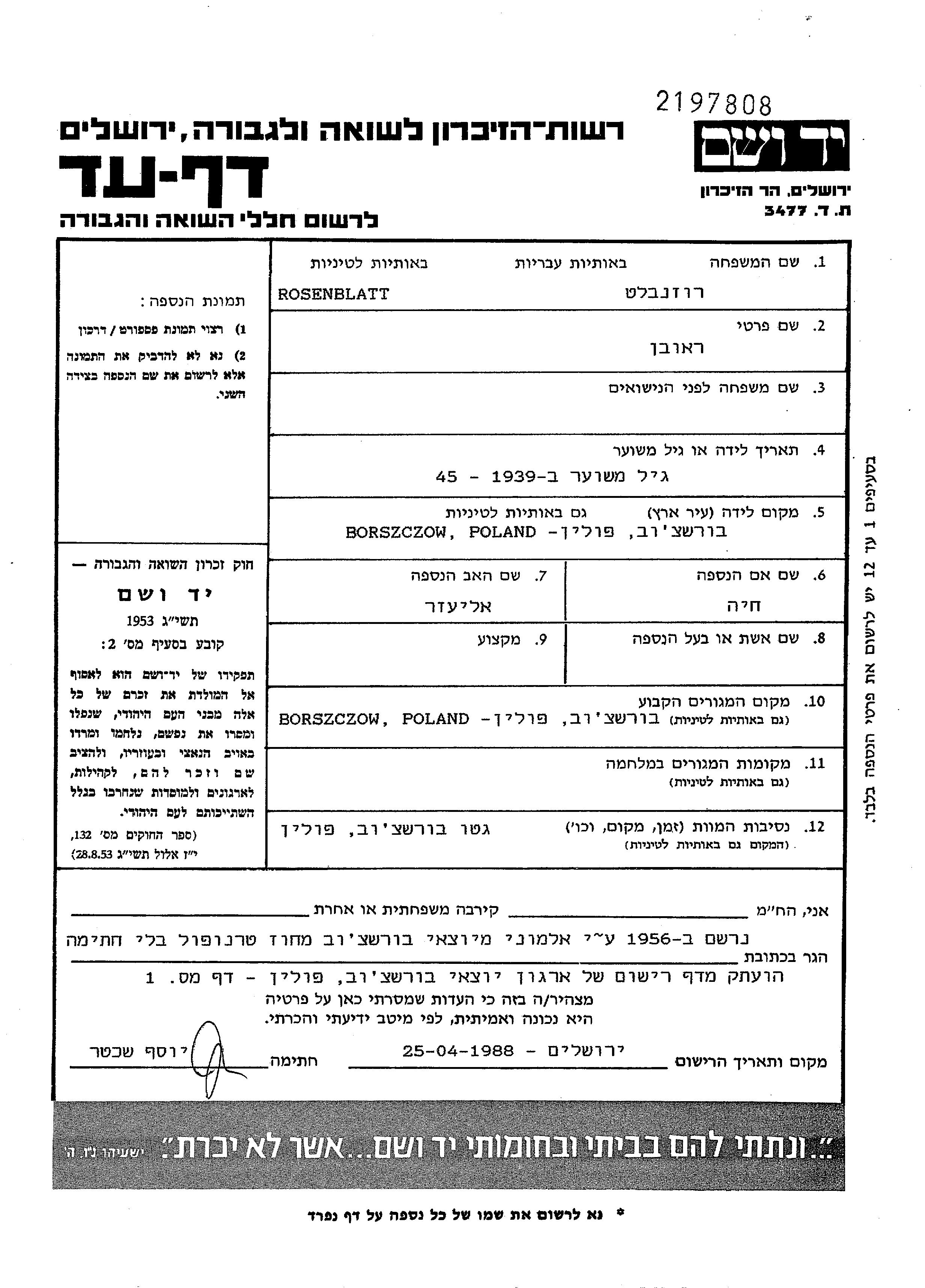 Rosenblatt ראובן Borszczow, פולין דף-עד