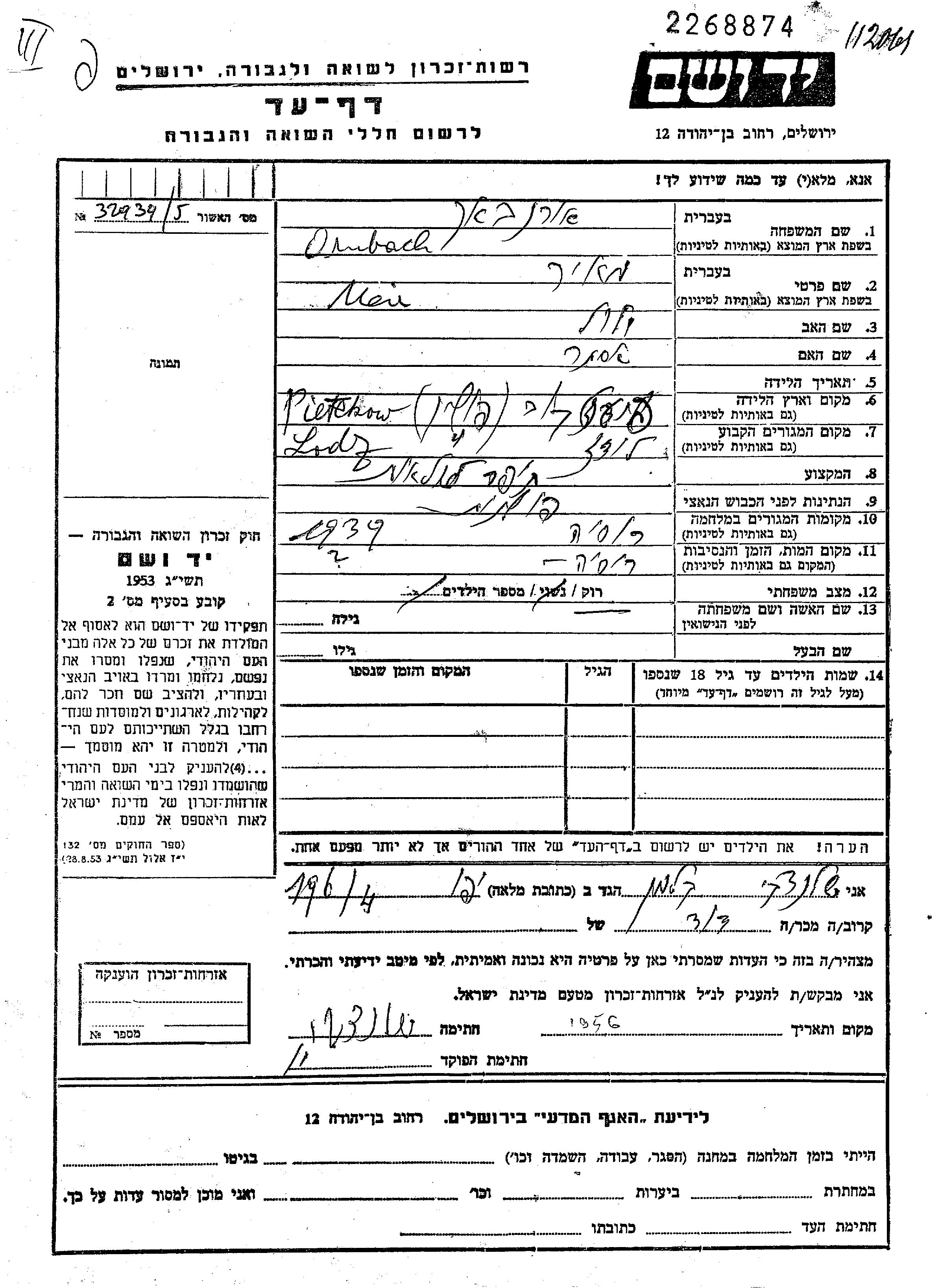יד ושם - המפעל להנצחת השמות בדפי עד