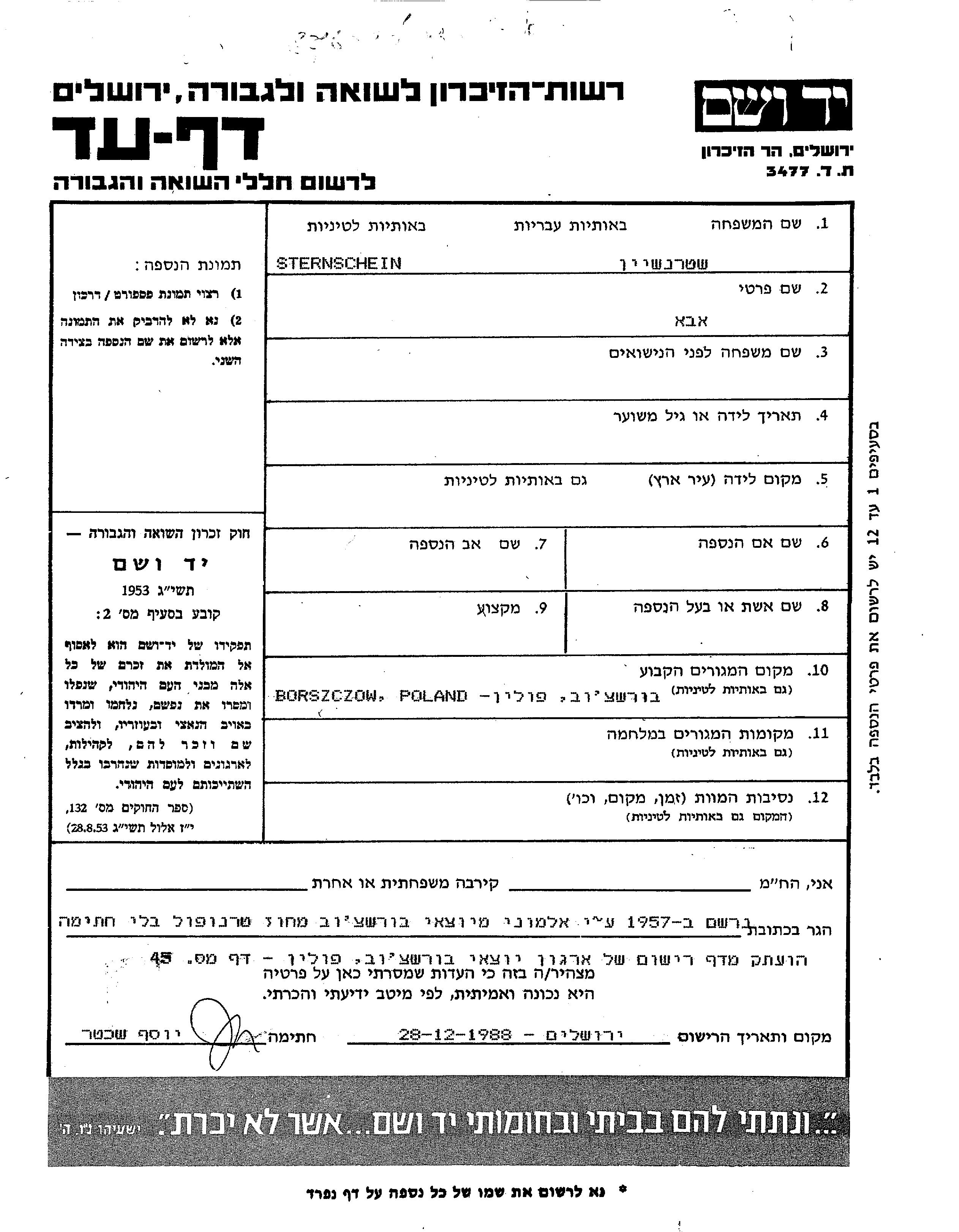 חיפוש שם מוסר דף העד. חיפוש לפי כל שם פרטי, כולל כינוי או שם חיבה