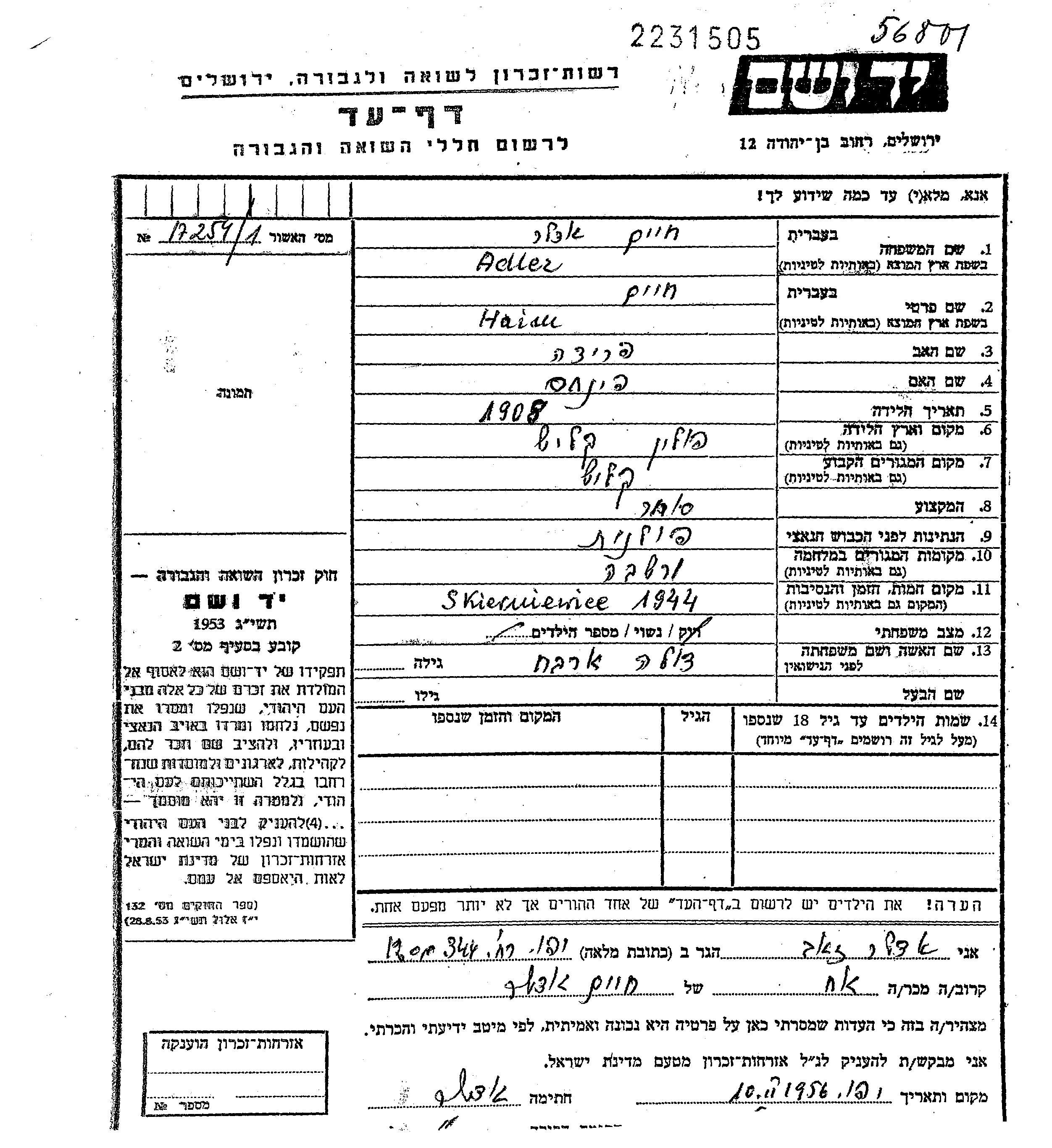 אדלר Haim 1908 Kalisz, פולין דף-עד