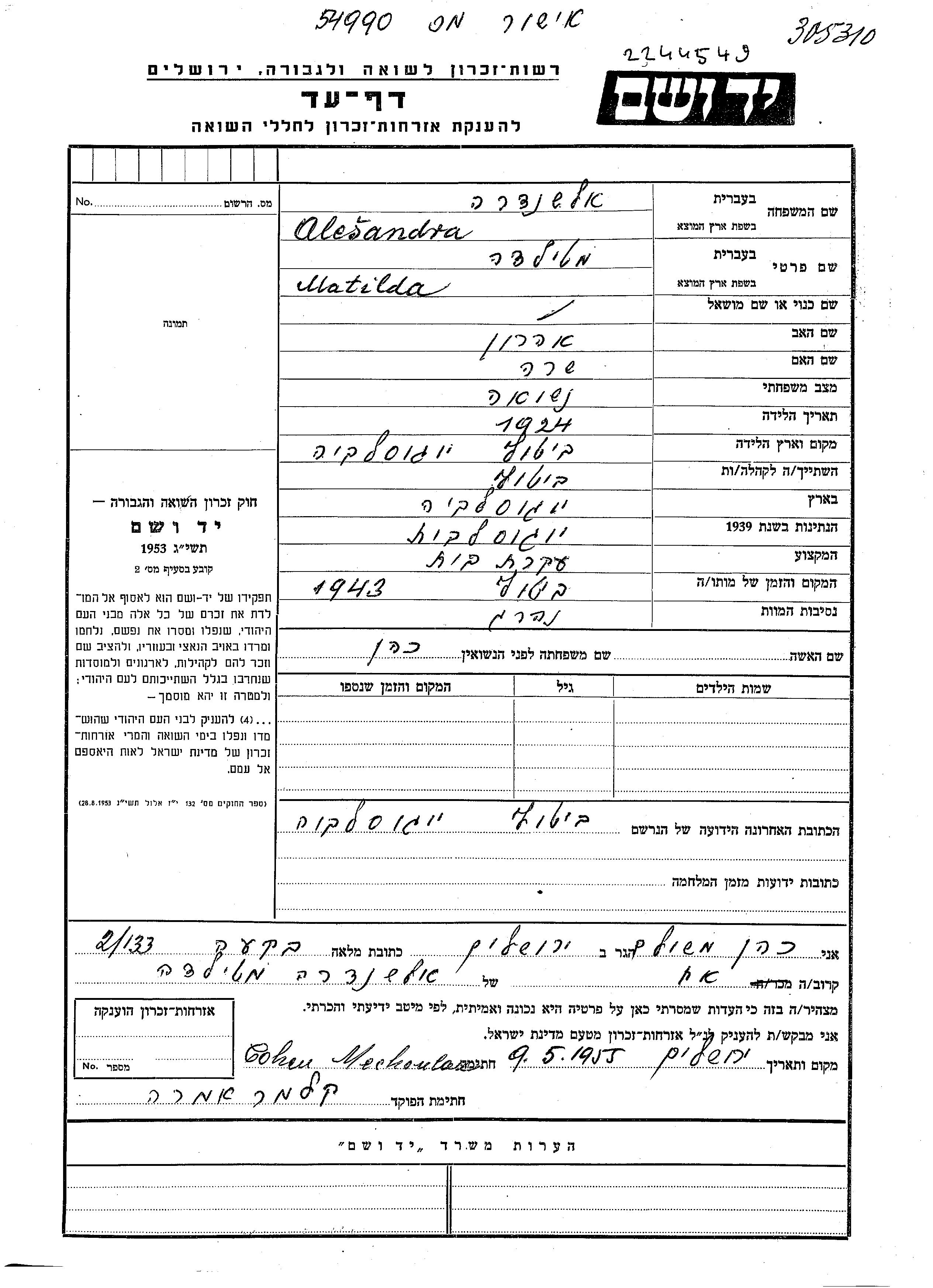 עיר/כפר, גטו/מחנה או אתר רצח או מחוז/אזור או מדינה. שם מקום ניתן לחפש רק בא-ב לטיני.