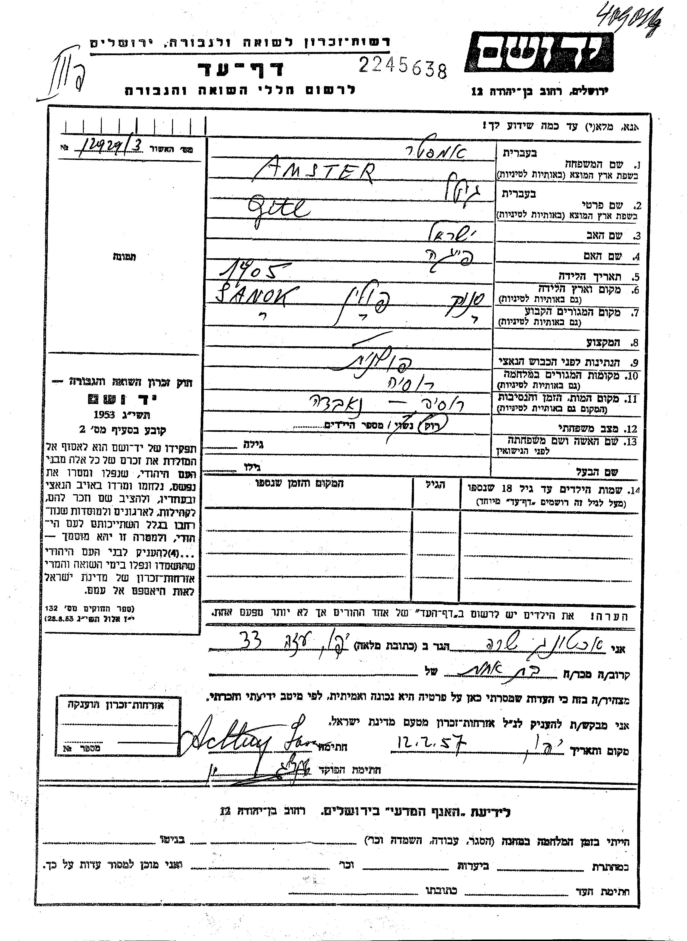 Gitl אמסטר נולדה בSanok שבפולין בשנת 1905 לIsrael ופייגה. היא היתה רווקה. לפני מלחמת העולם השניה התגוררה בSanok שבפולין. בזמן המלחמה היא היתה ברוסיה (ברה"מ) שברוסיה (ברה"מ). היא נרצחה בשואה. מקום המוות: רוסיה (ברה"מ) שברוסיה (ברה"מ).