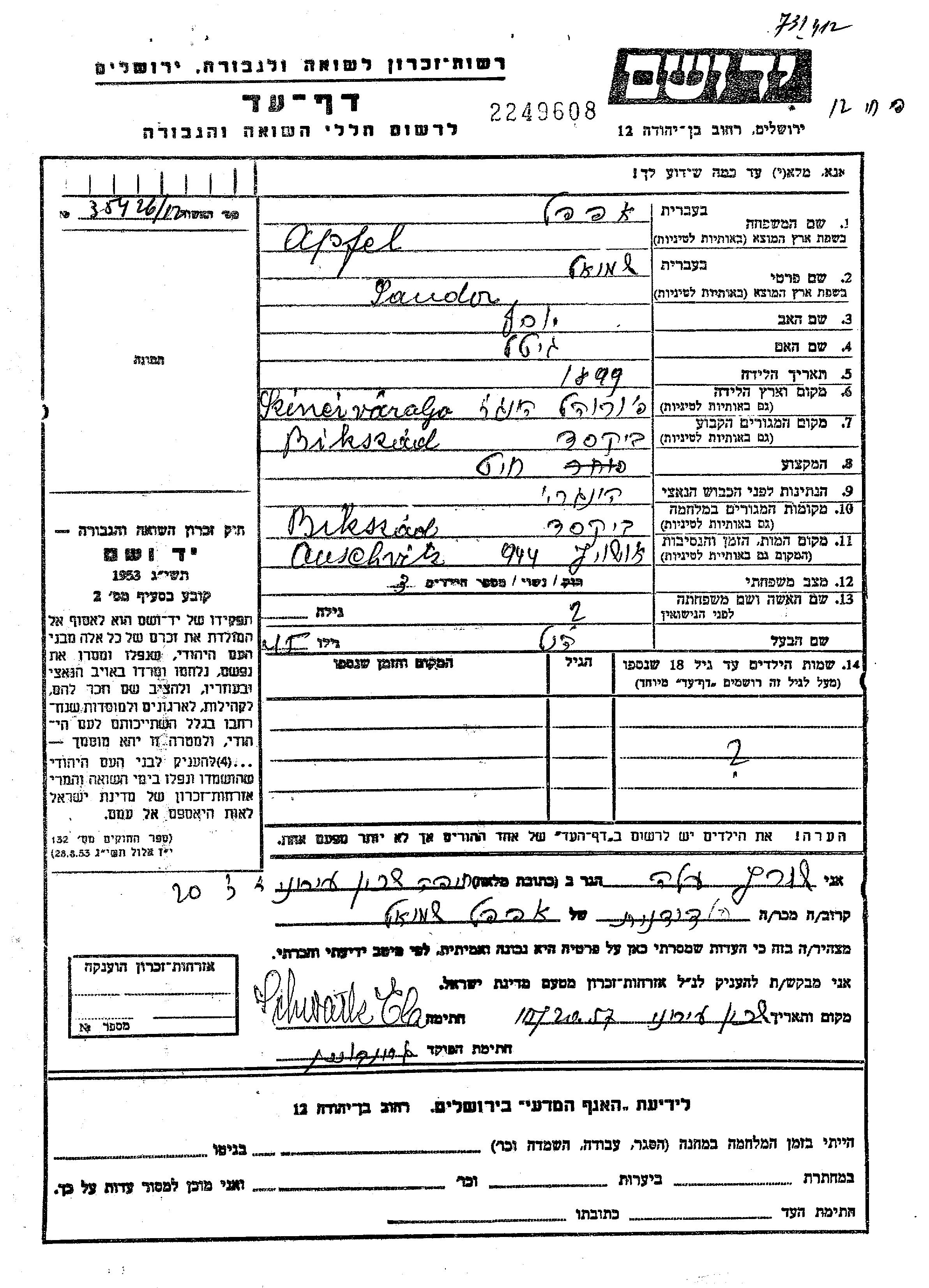 חיפוש שם מוסר דף העד. חיפוש לפי כל שם פרטי, כולל כינוי או שם חיבה