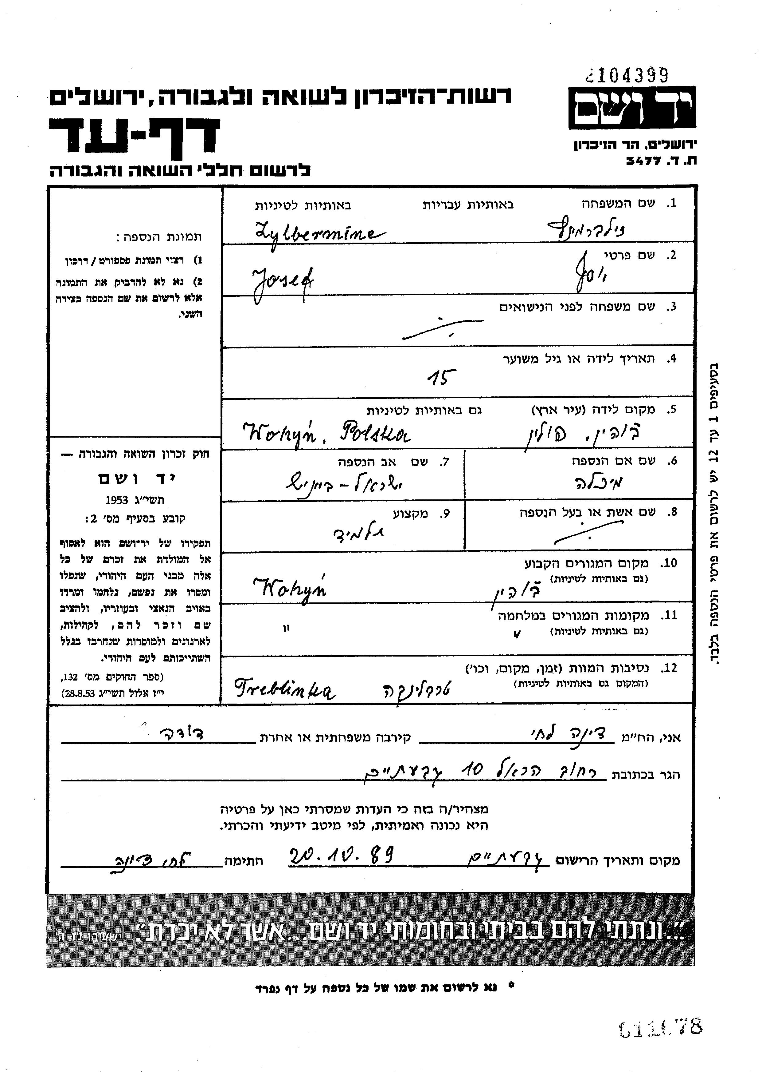 יד ושם - המפעל להנצחת השמות בדפי עד