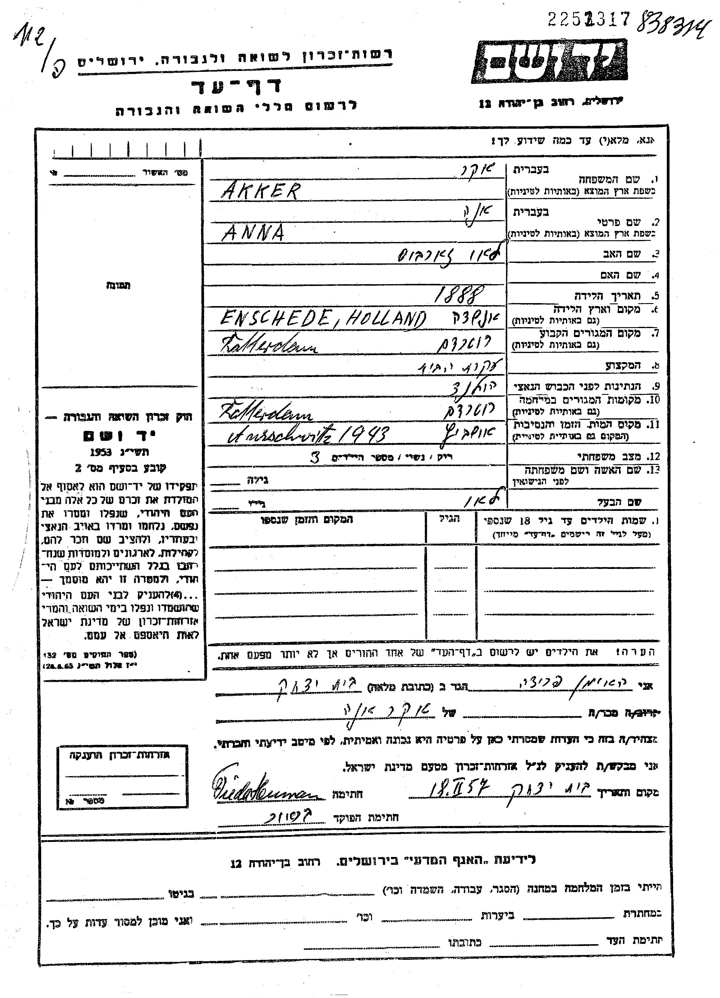 אנה נרצחה בשואה. מקום המוות: Auschwitz שבפולין בשנת 1943.