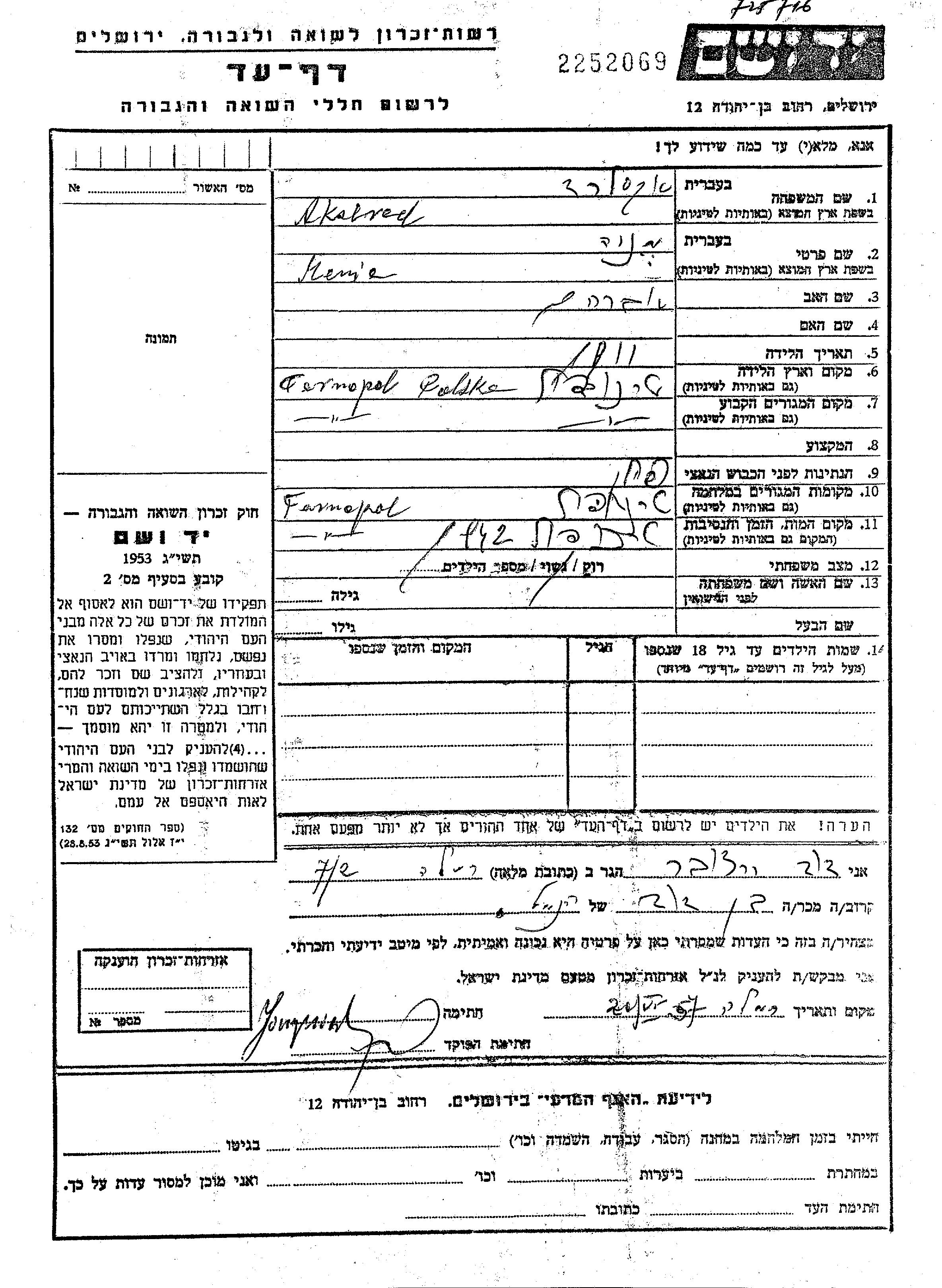 יד ושם - המפעל להנצחת השמות בדפי עד