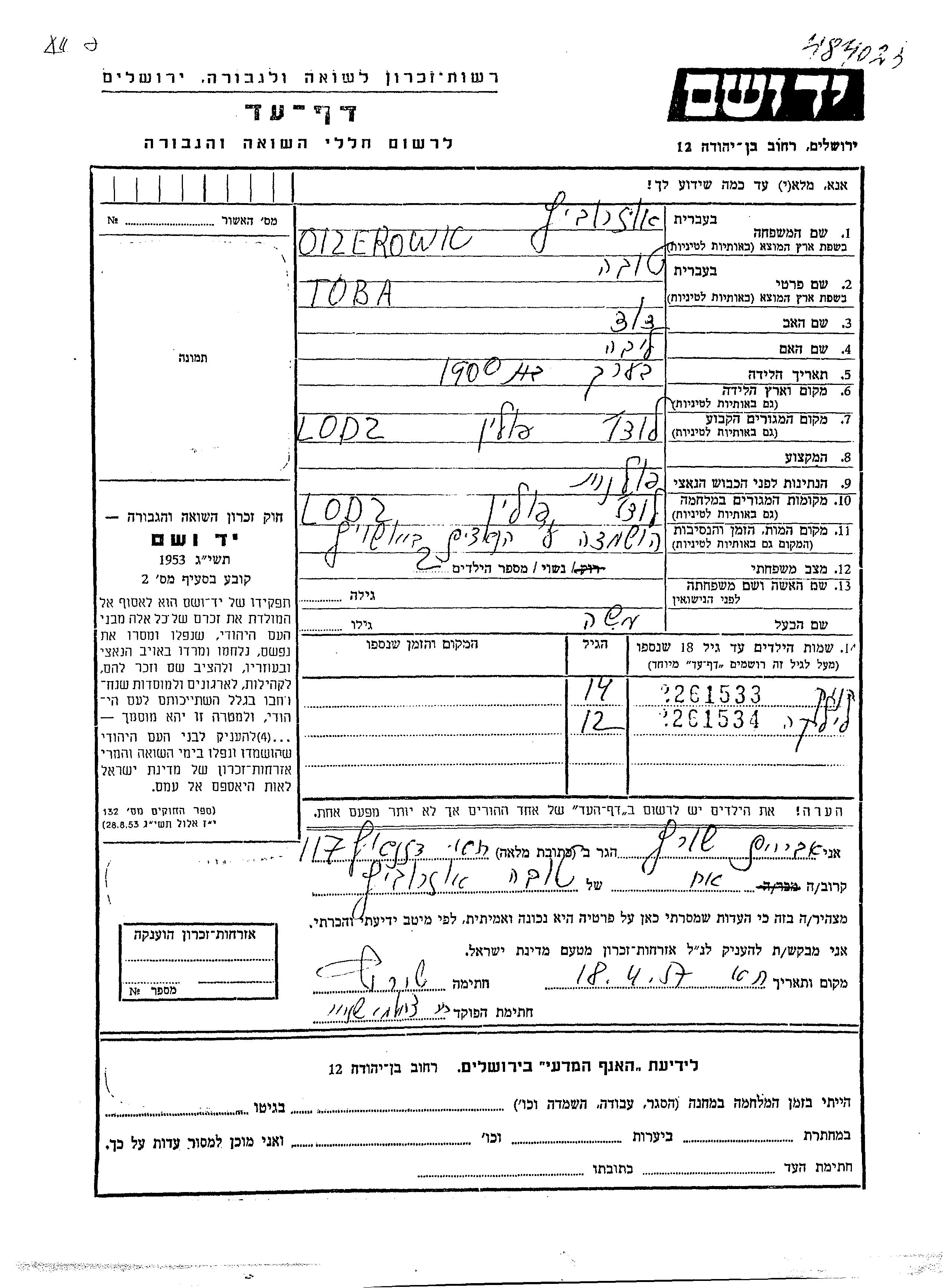 חיפוש שם מוסר דף העד. חיפוש לפי כל שם פרטי, כולל כינוי או שם חיבה