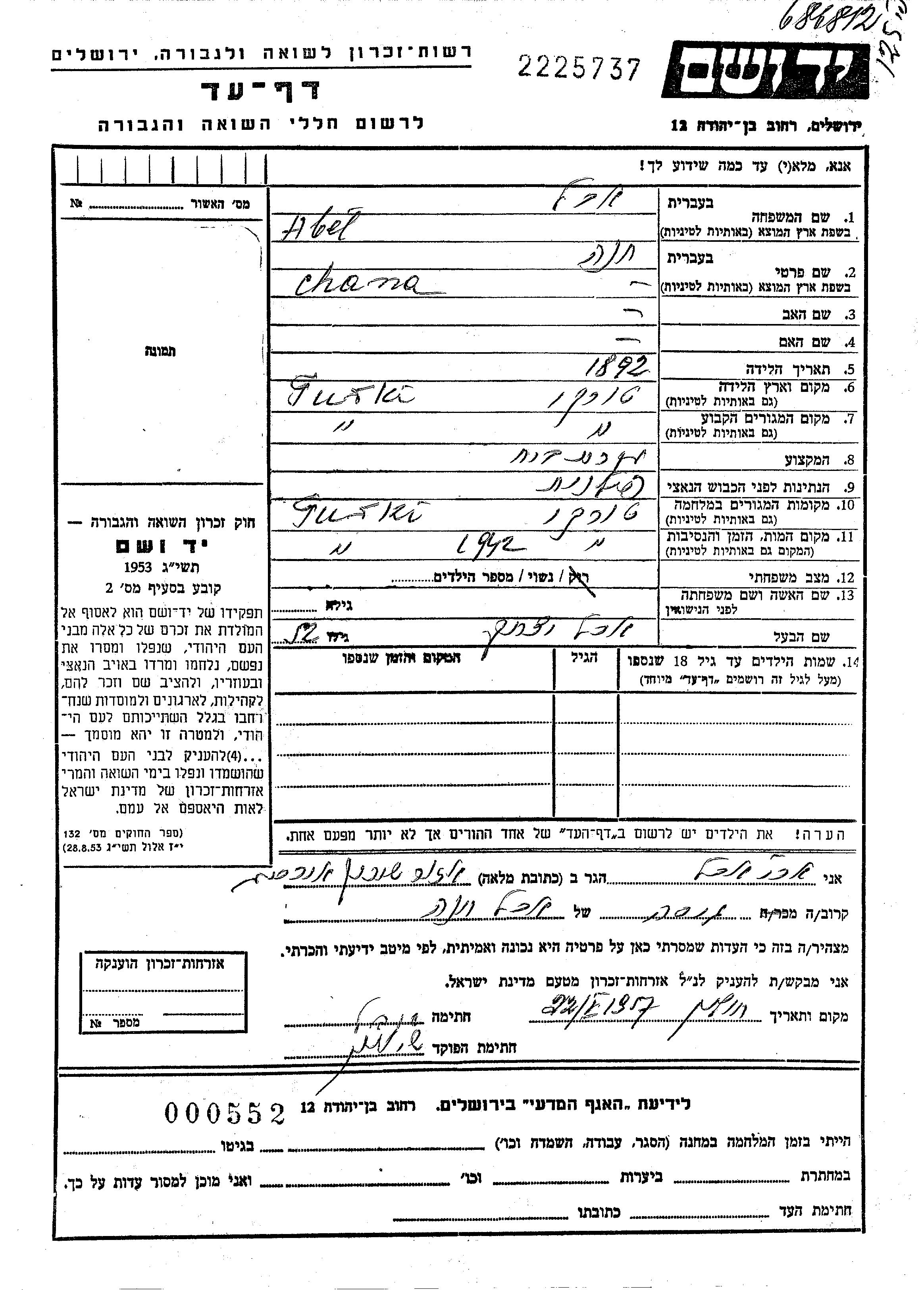 יד ושם - המפעל להנצחת השמות בדפי עד
