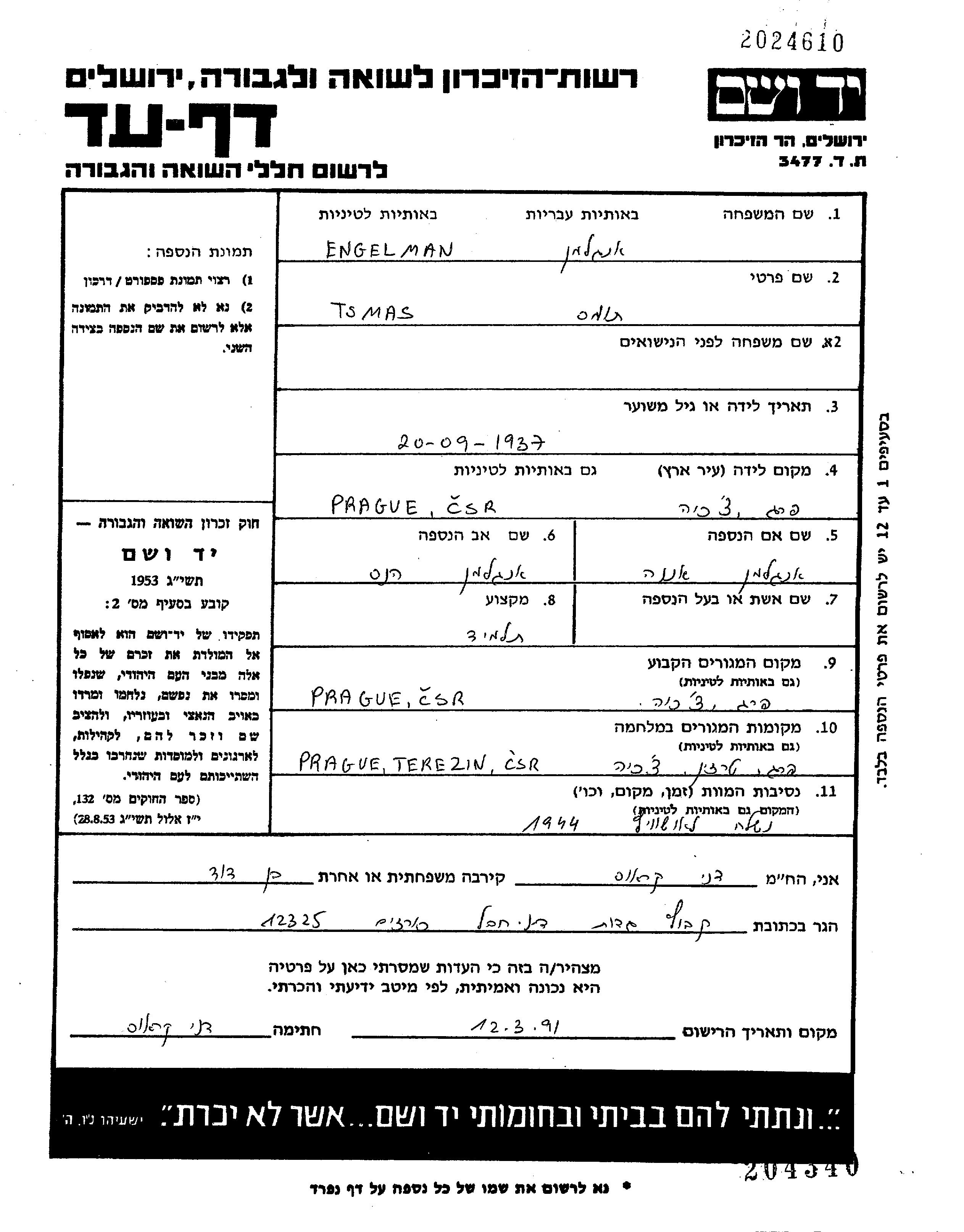 אנגלמן טומס 1937 Praha, צ'כוסלובקיה דף-עד