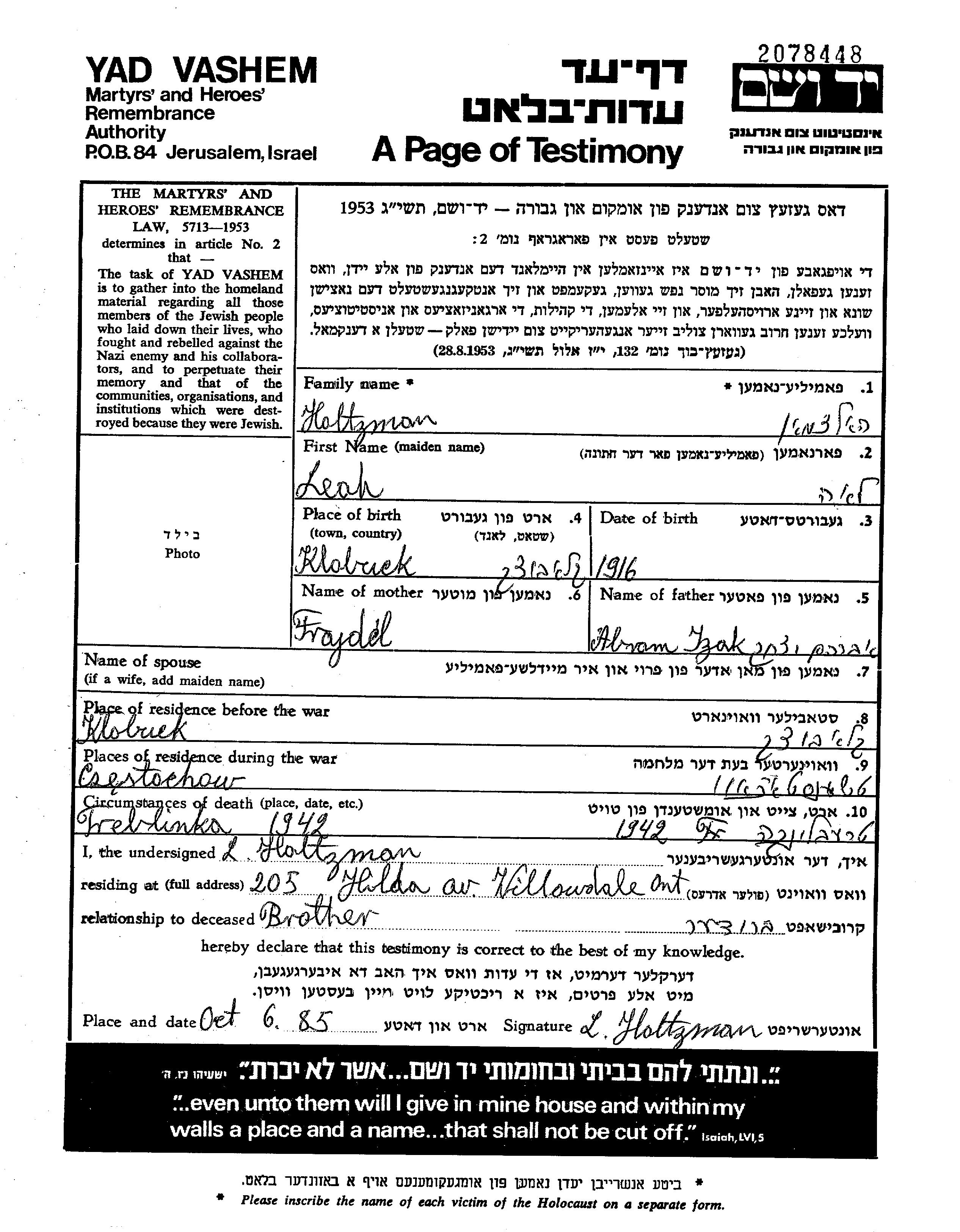 חיפוש שם מוסר דף העד. חיפוש לפי כל שם פרטי, כולל כינוי או שם חיבה