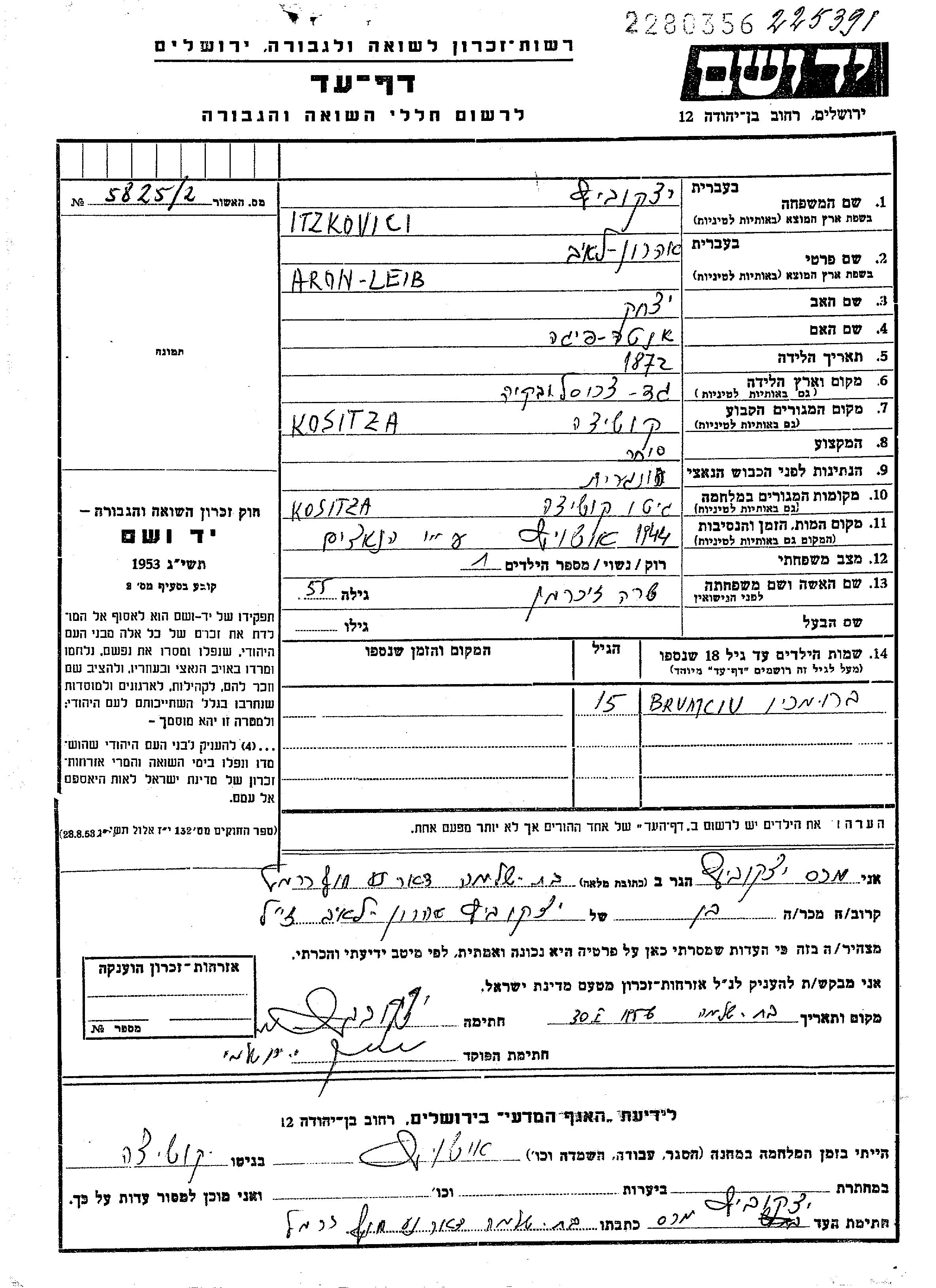 Itzkovici ארון לייב 1872 Kosice, צ'כוסלובקיה דף-עד