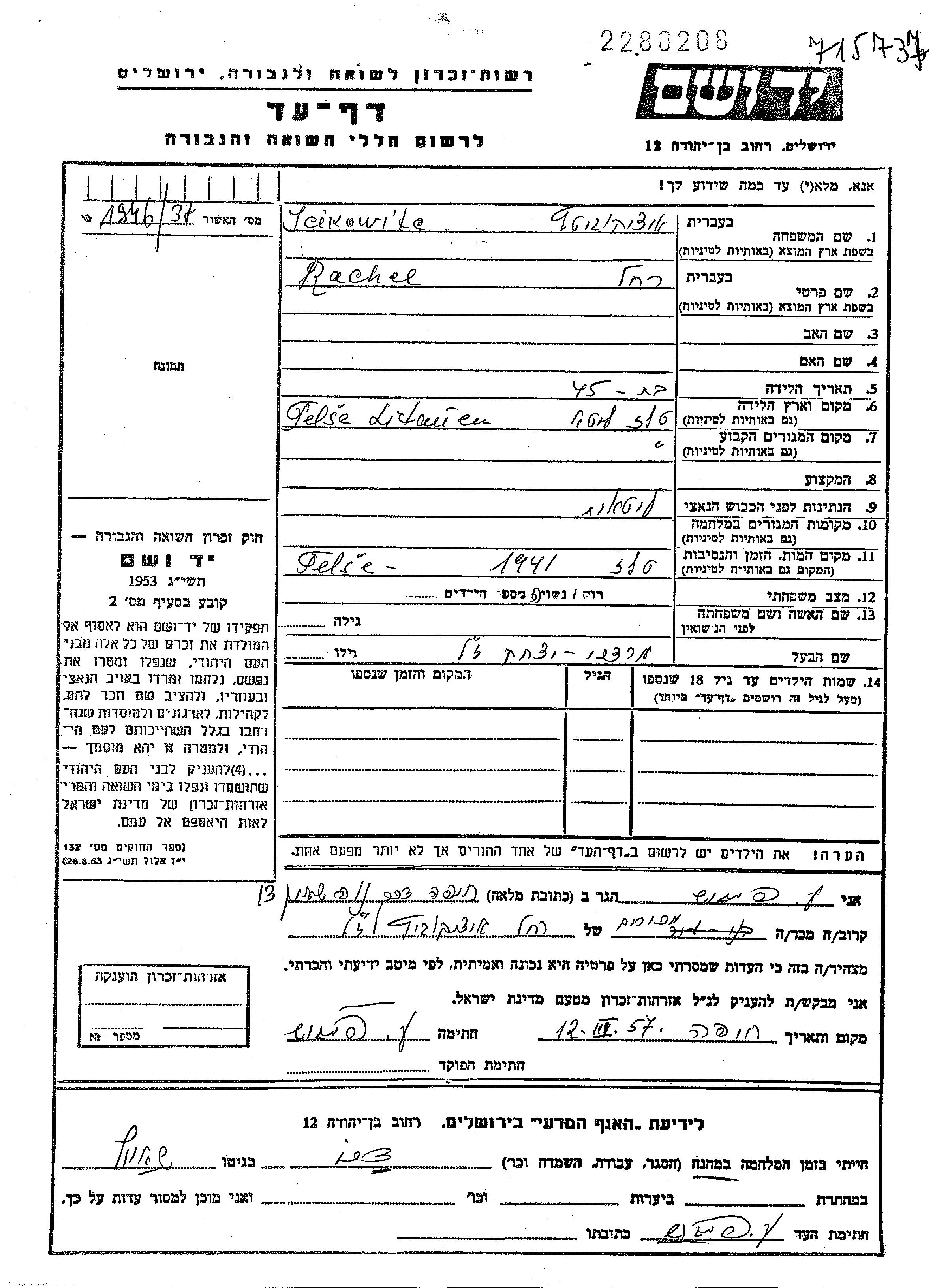 חיפוש שם מוסר דף העד. חיפוש לפי כל שם פרטי, כולל כינוי או שם חיבה