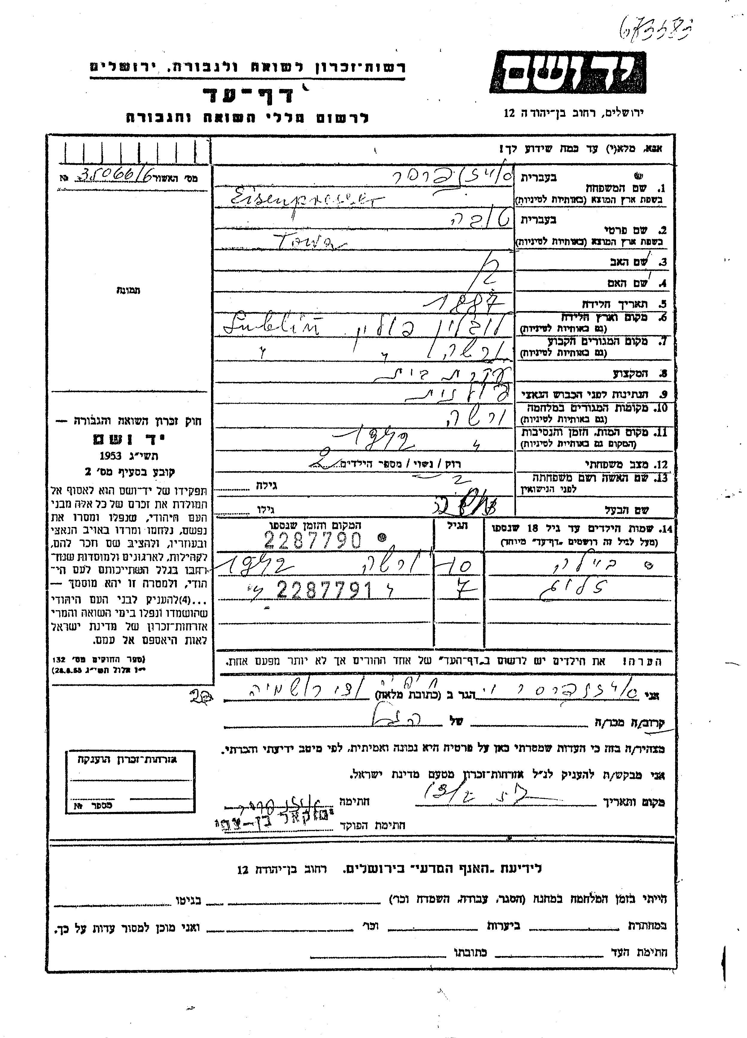 Eisenpresser Beila 1932 Lublin, פולין דף-עד