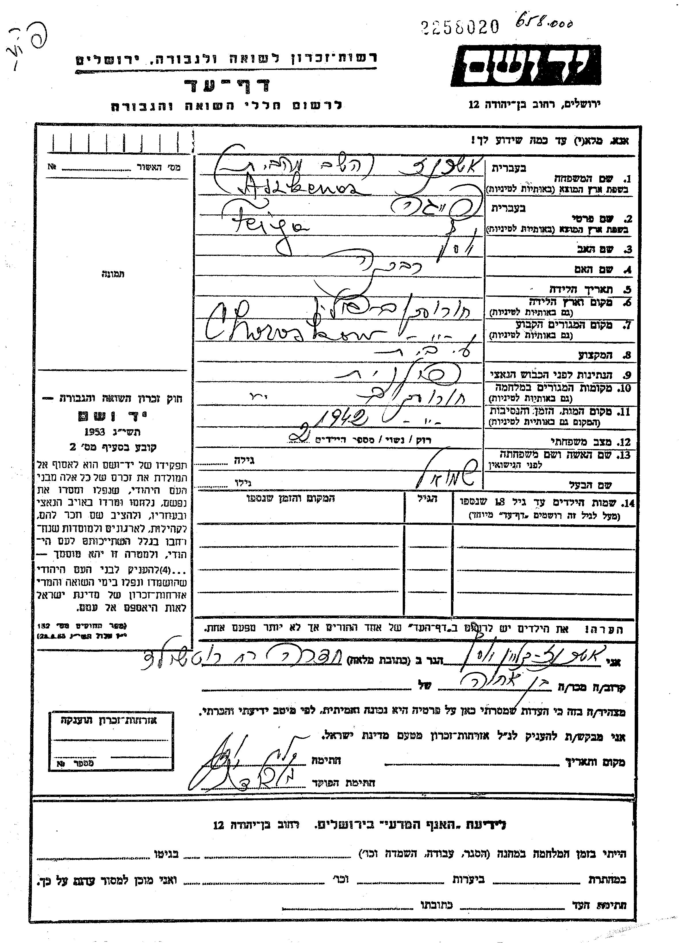 פייגה Aszkenas נולדה בChorostkow שבפולין ליוסף ורבקה. היא היתה עקרת בית ונשואה לשמואל. לפני מלחמת העולם השניה התגוררה בChorostkow שבפולין. בזמן המלחמה היא היתה בChorostkow שבפולין. פייגה נרצחה בשואה. מקום המוות: Chorostkow שבפולין בשנת 1942.
