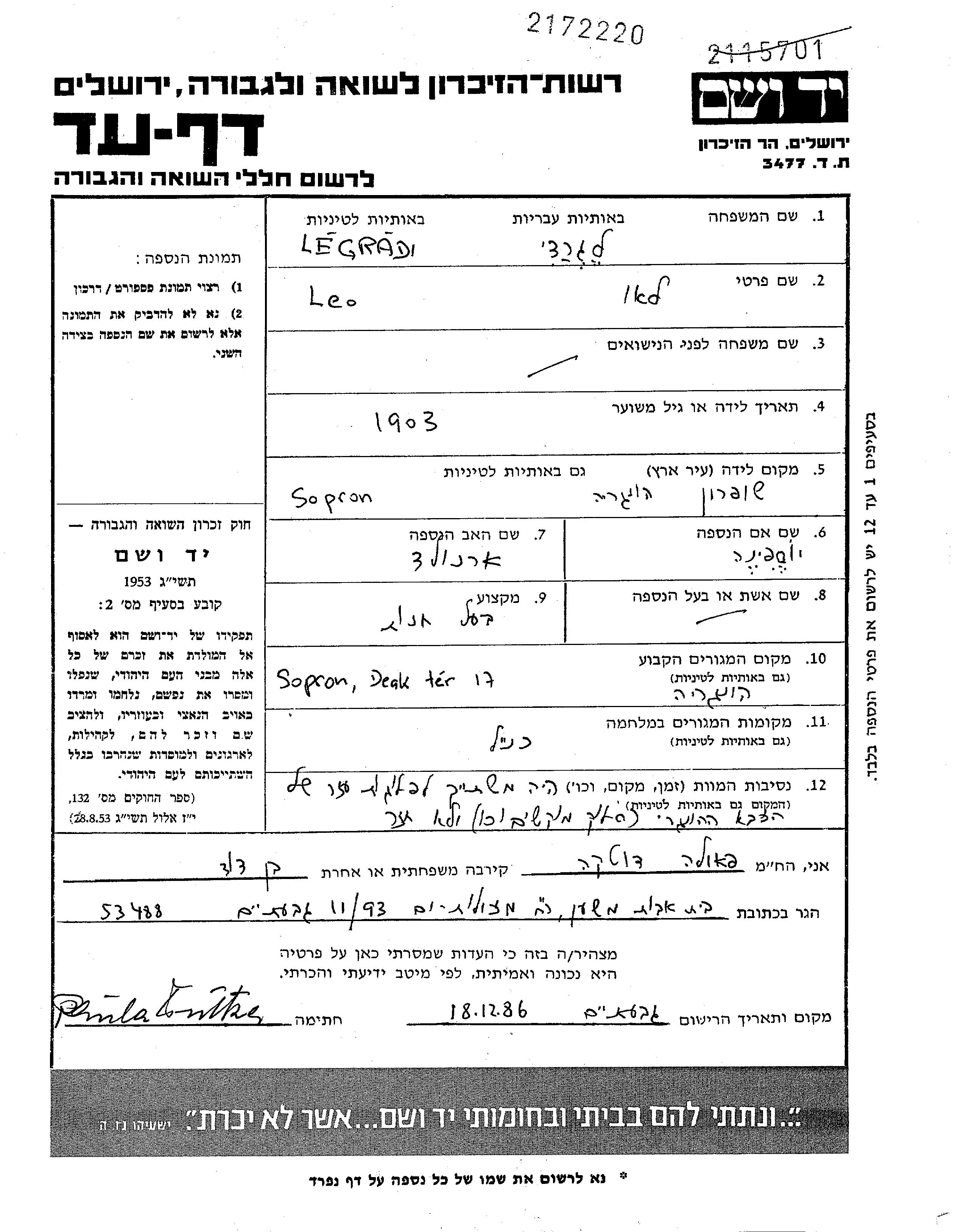 יד ושם - המפעל להנצחת השמות בדפי עד