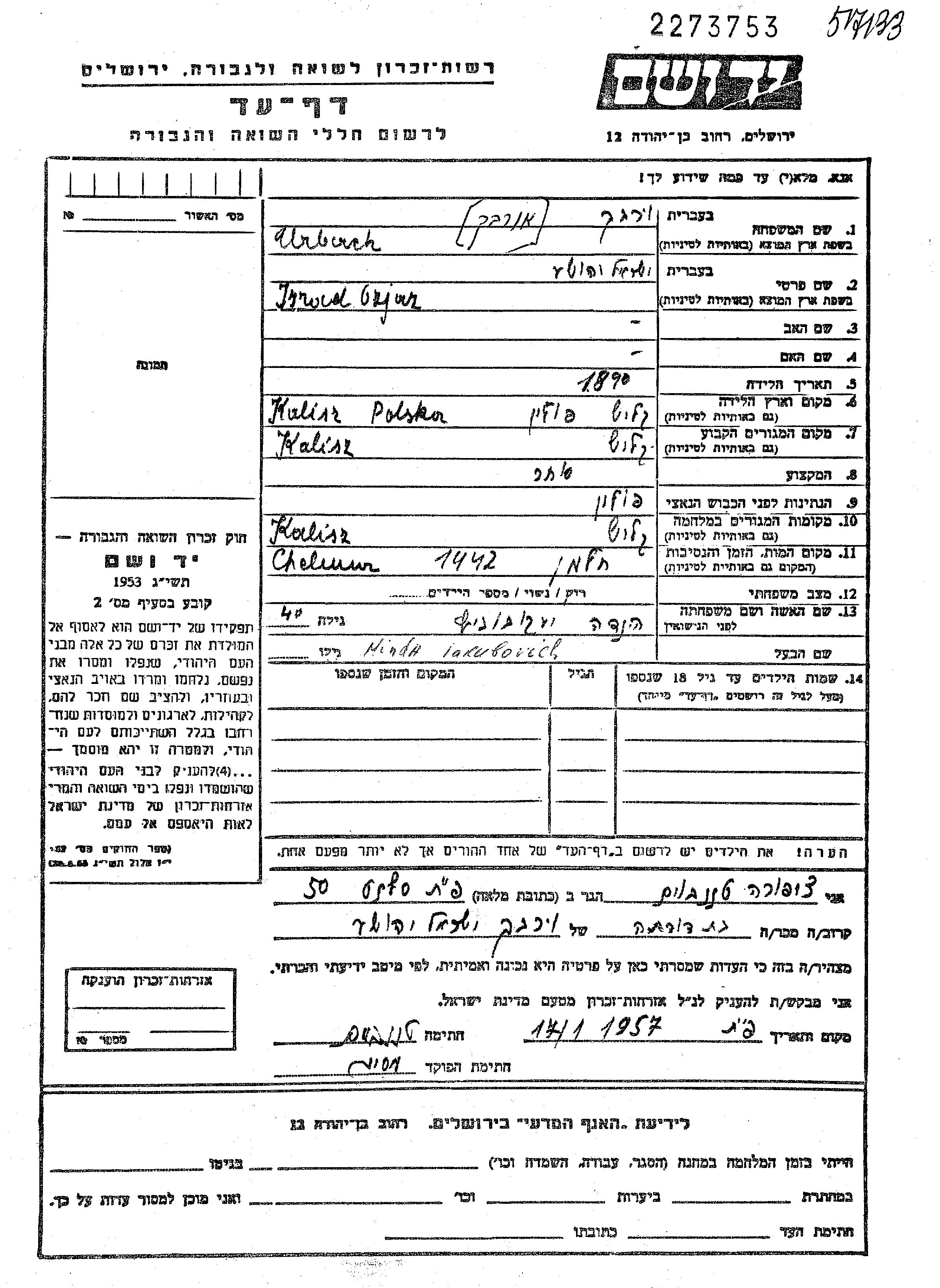 אורבך Izrael Ozjaz יהושע 1890 Kalisz, פולין דף-עד
