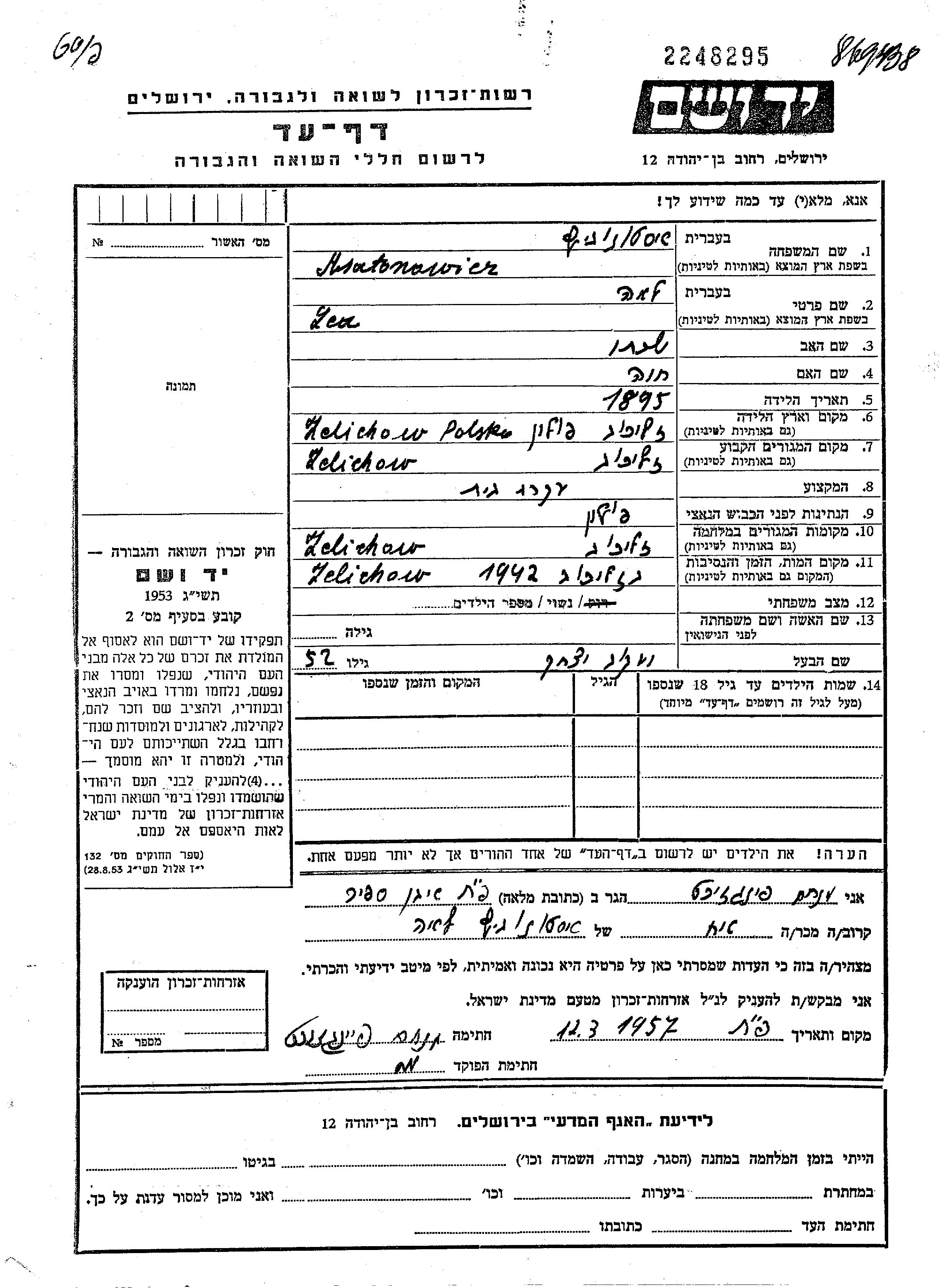 יד ושם - המפעל להנצחת השמות בדפי עד