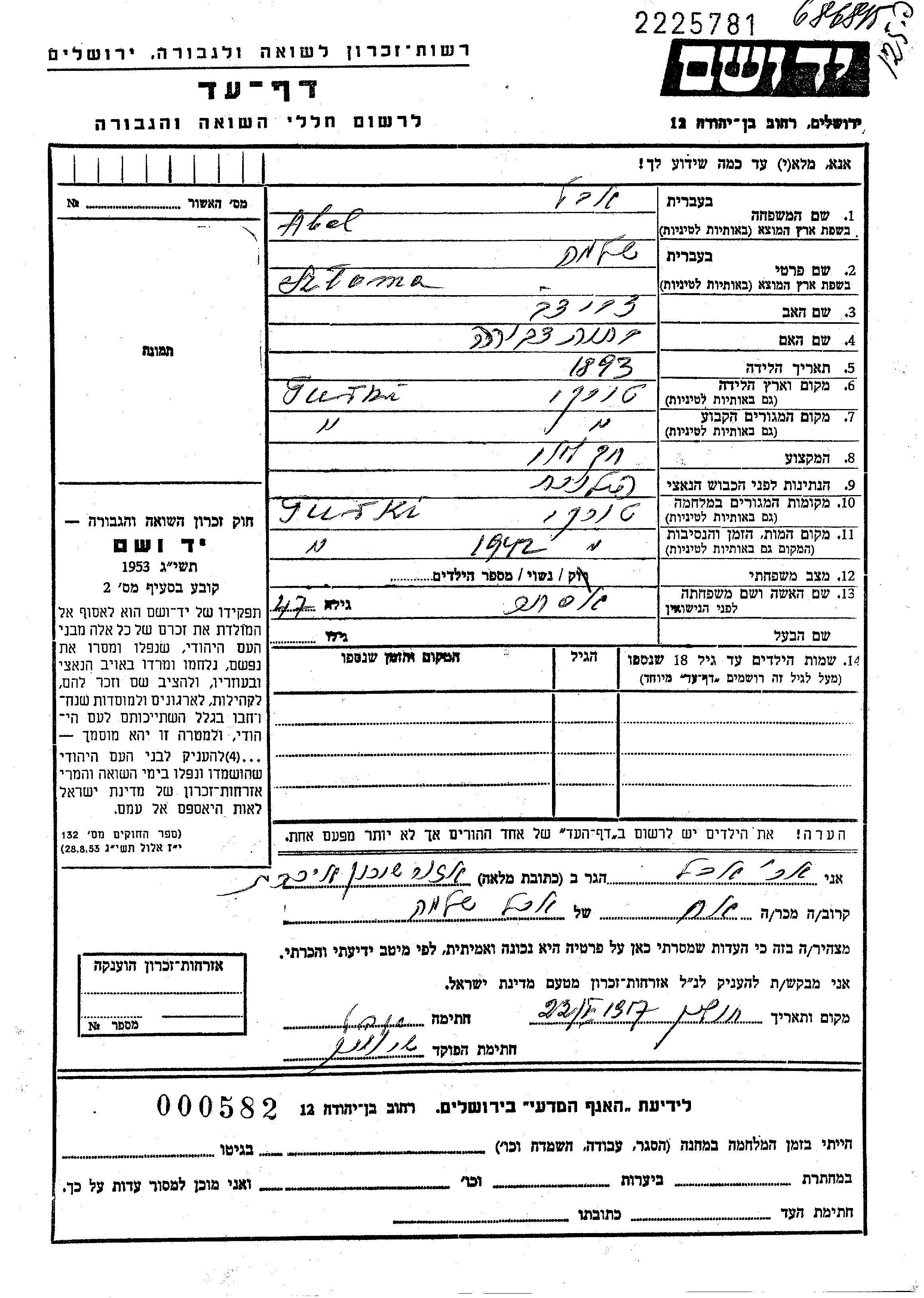 יד ושם - המפעל להנצחת השמות בדפי עד
