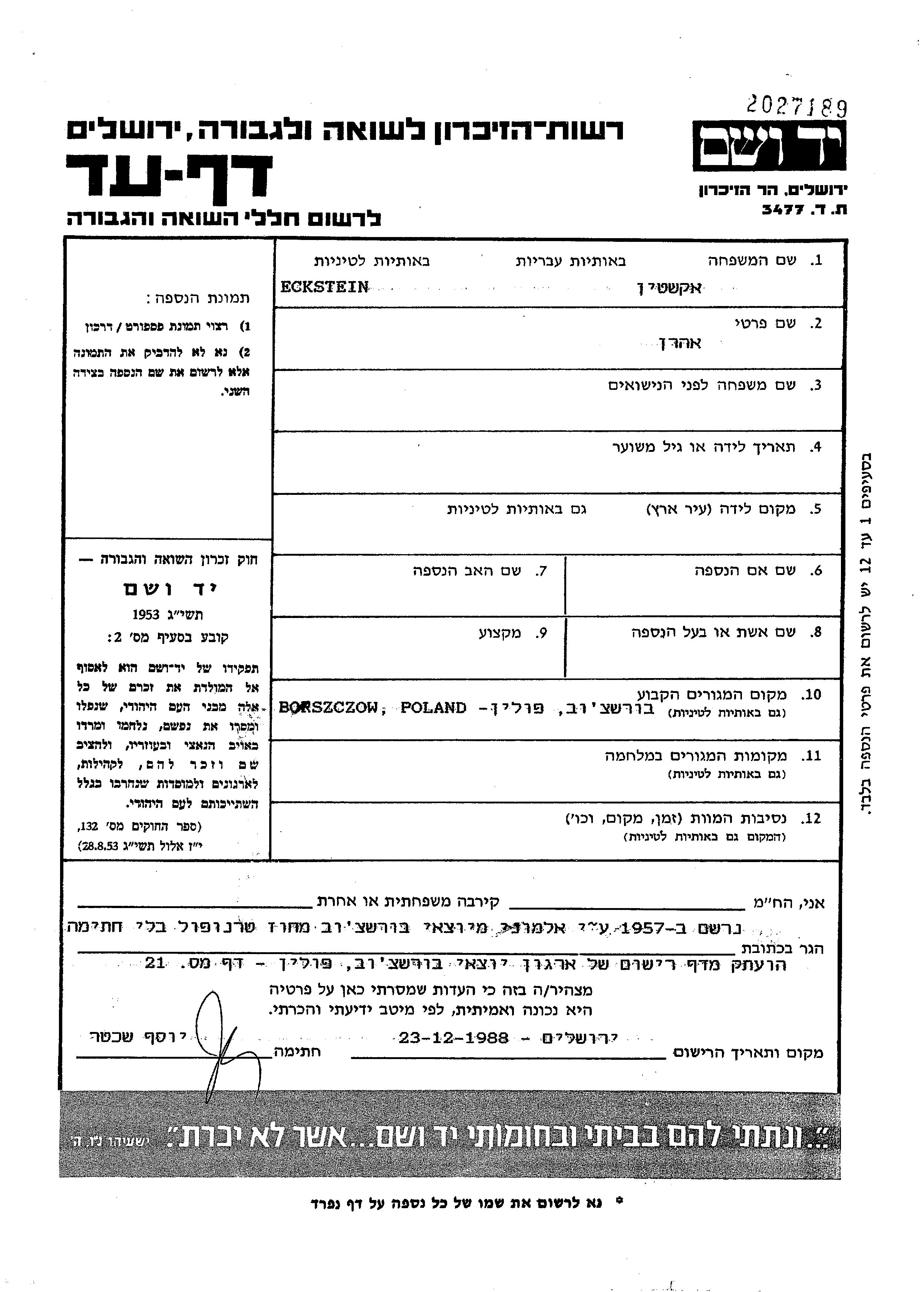 חיפוש שם מוסר דף העד. חיפוש לפי כל שם פרטי, כולל כינוי או שם חיבה