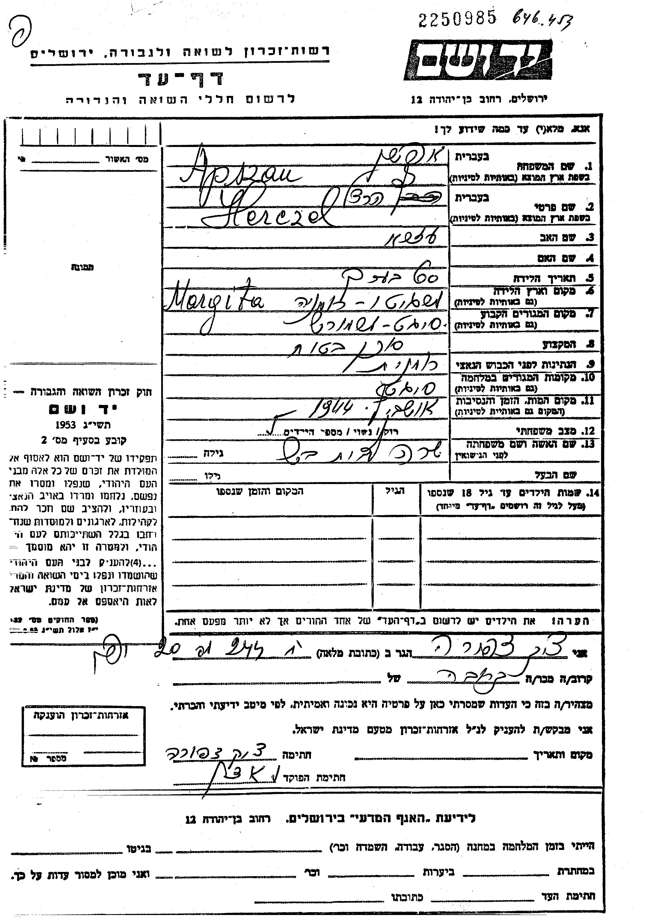 יד ושם - המפעל להנצחת השמות בדפי עד
