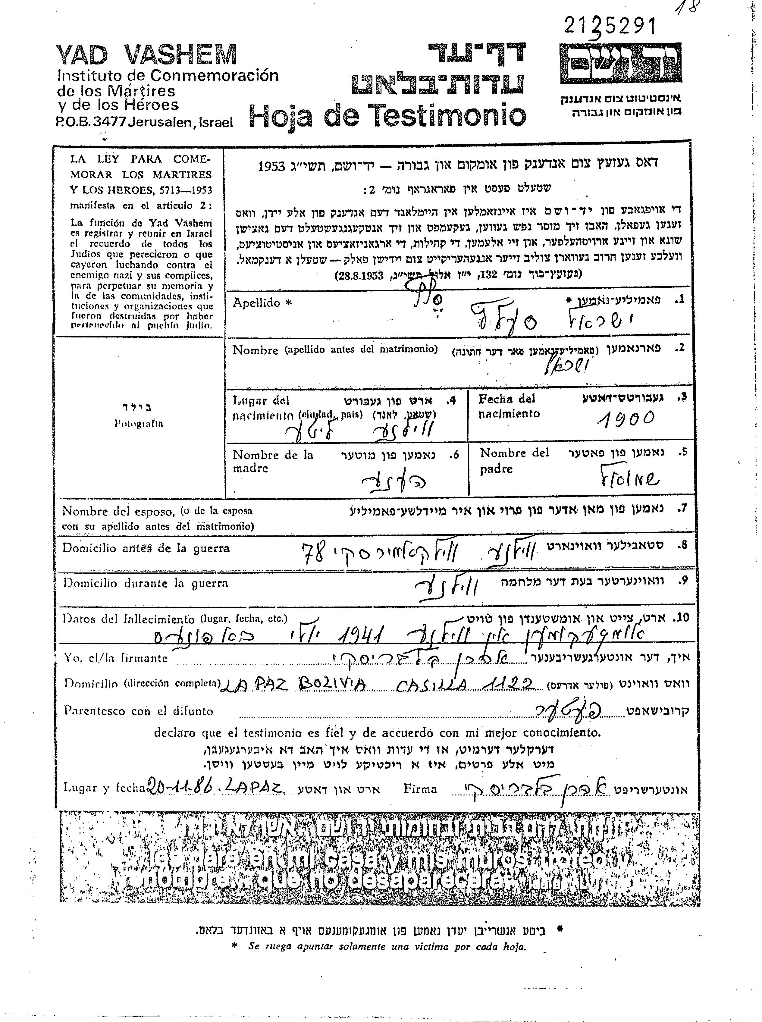 הוא נרצח בשואה. מקום המוות: Wilno שבפולין.