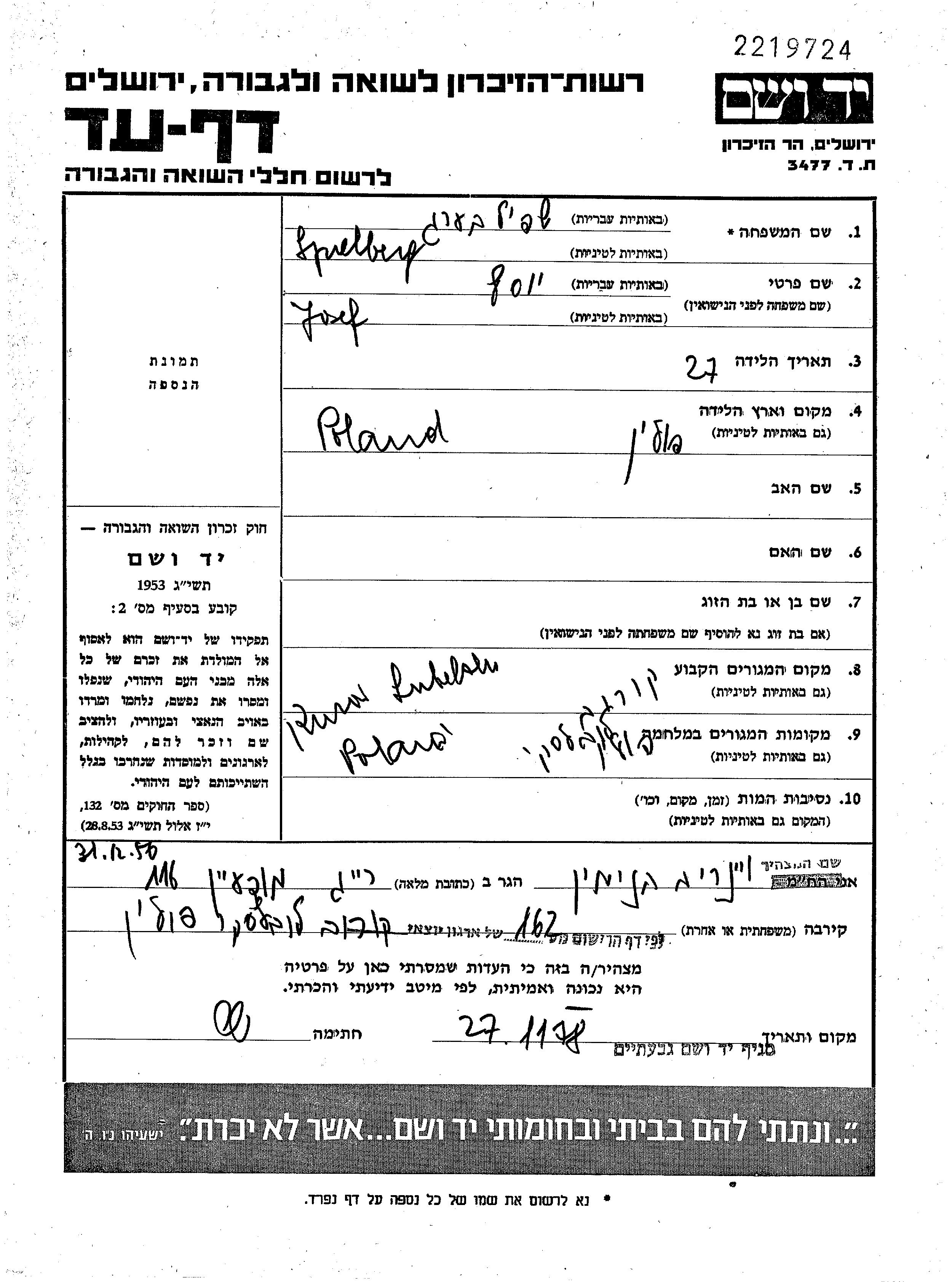 יד ושם - המפעל להנצחת השמות בדפי עד