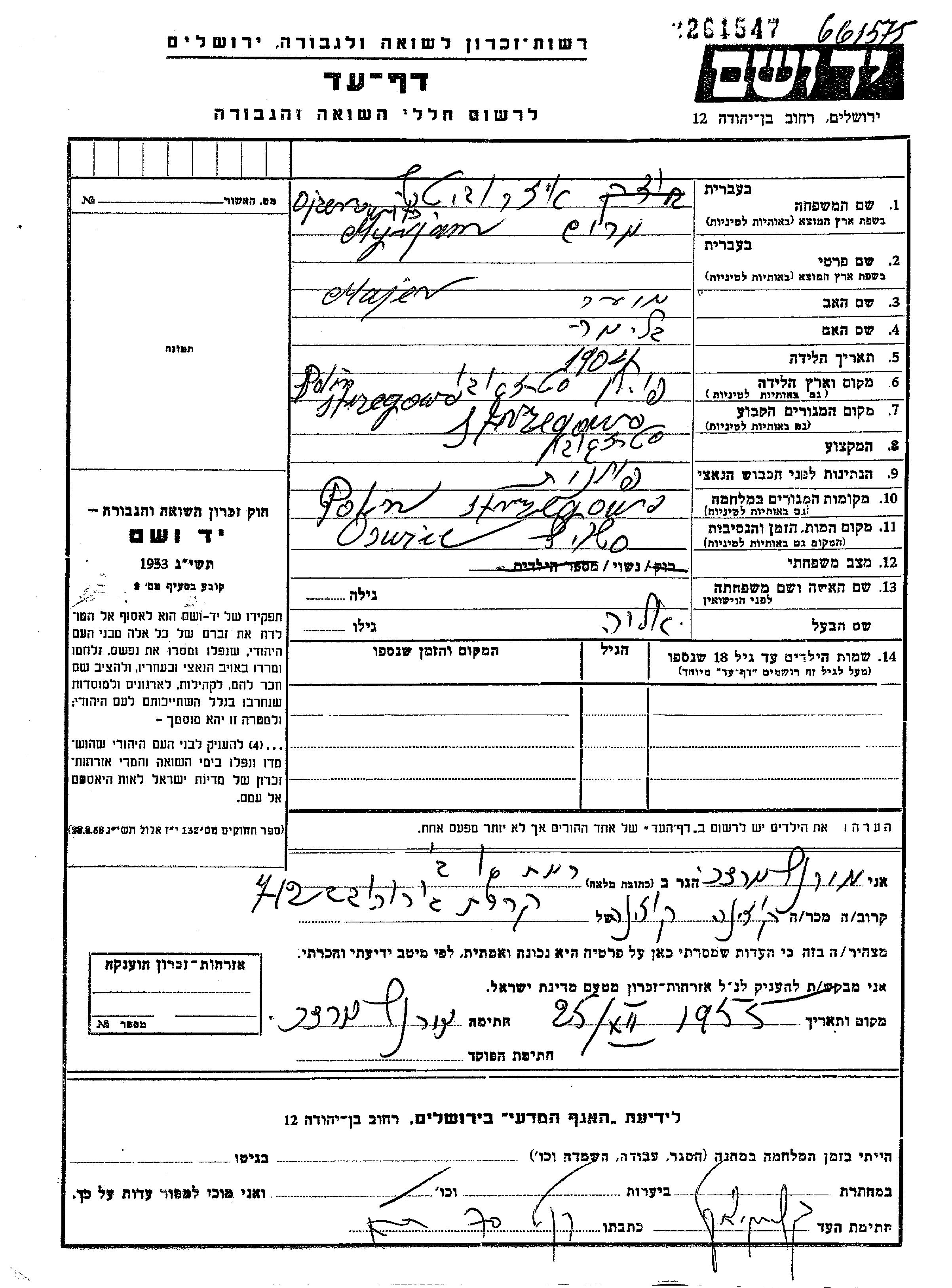 יד ושם - המפעל להנצחת השמות בדפי עד