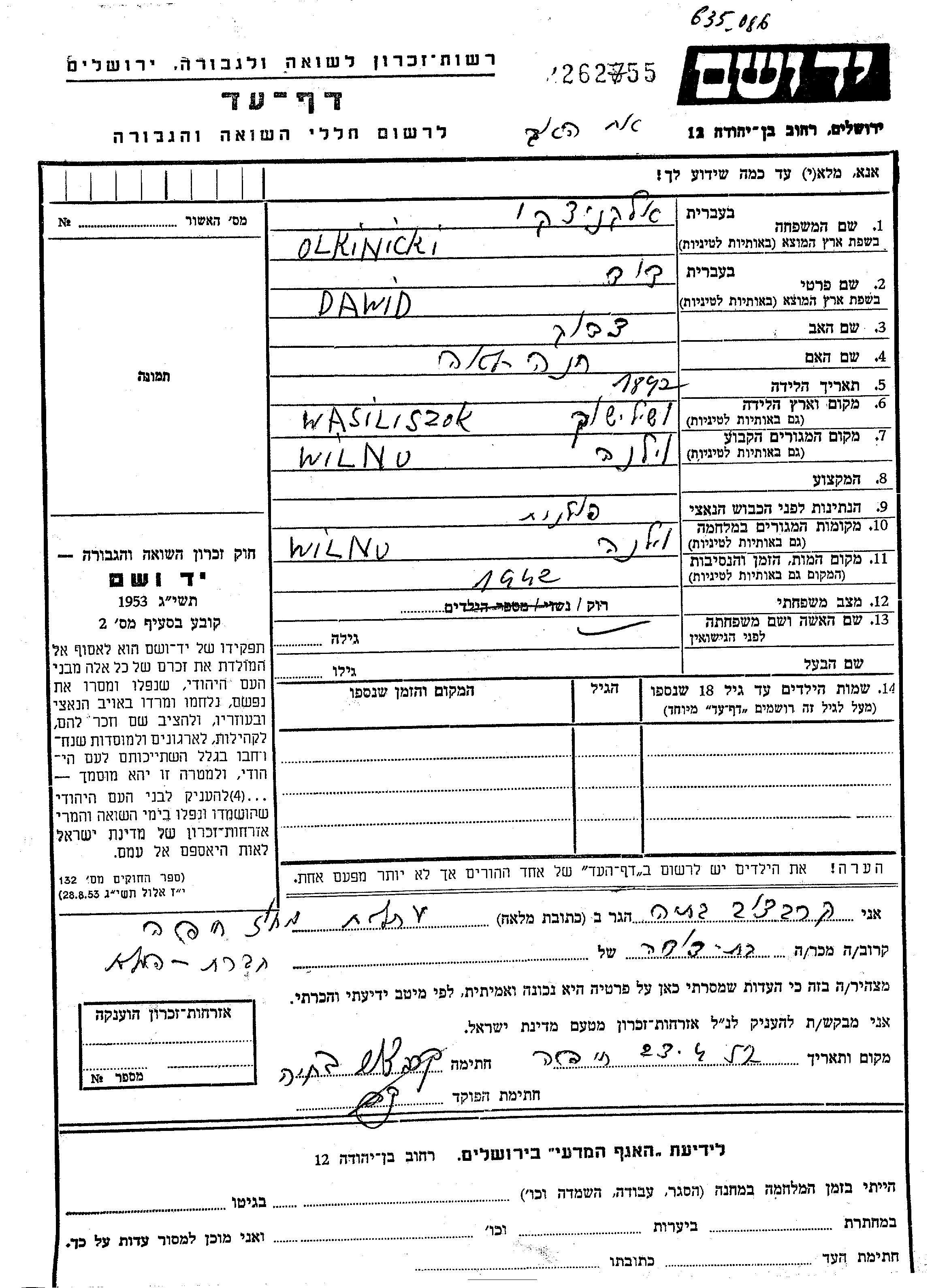 Olkinicki Dawid 1892 Wilno, פולין דף-עד