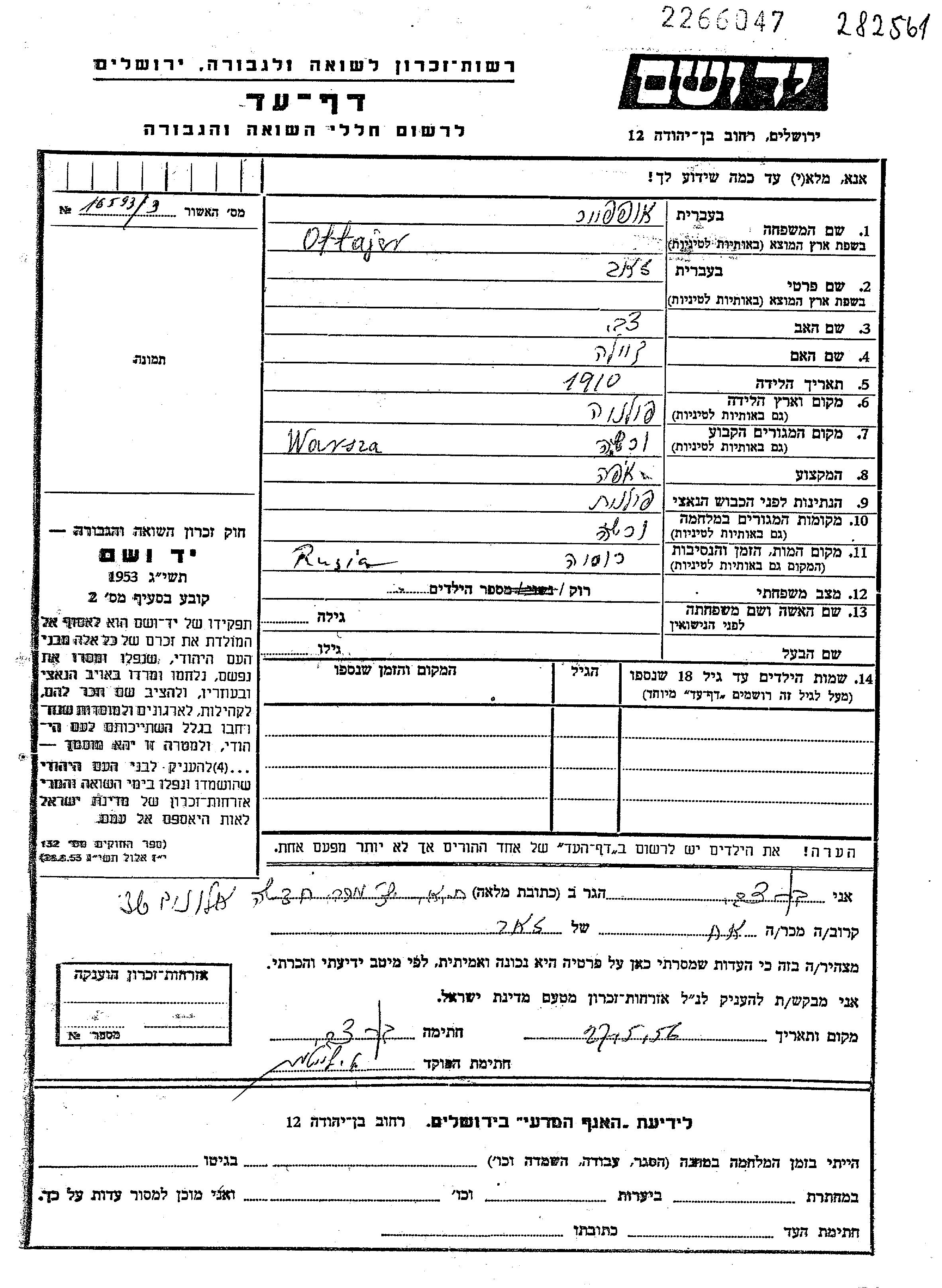 יד ושם - המפעל להנצחת השמות בדפי עד