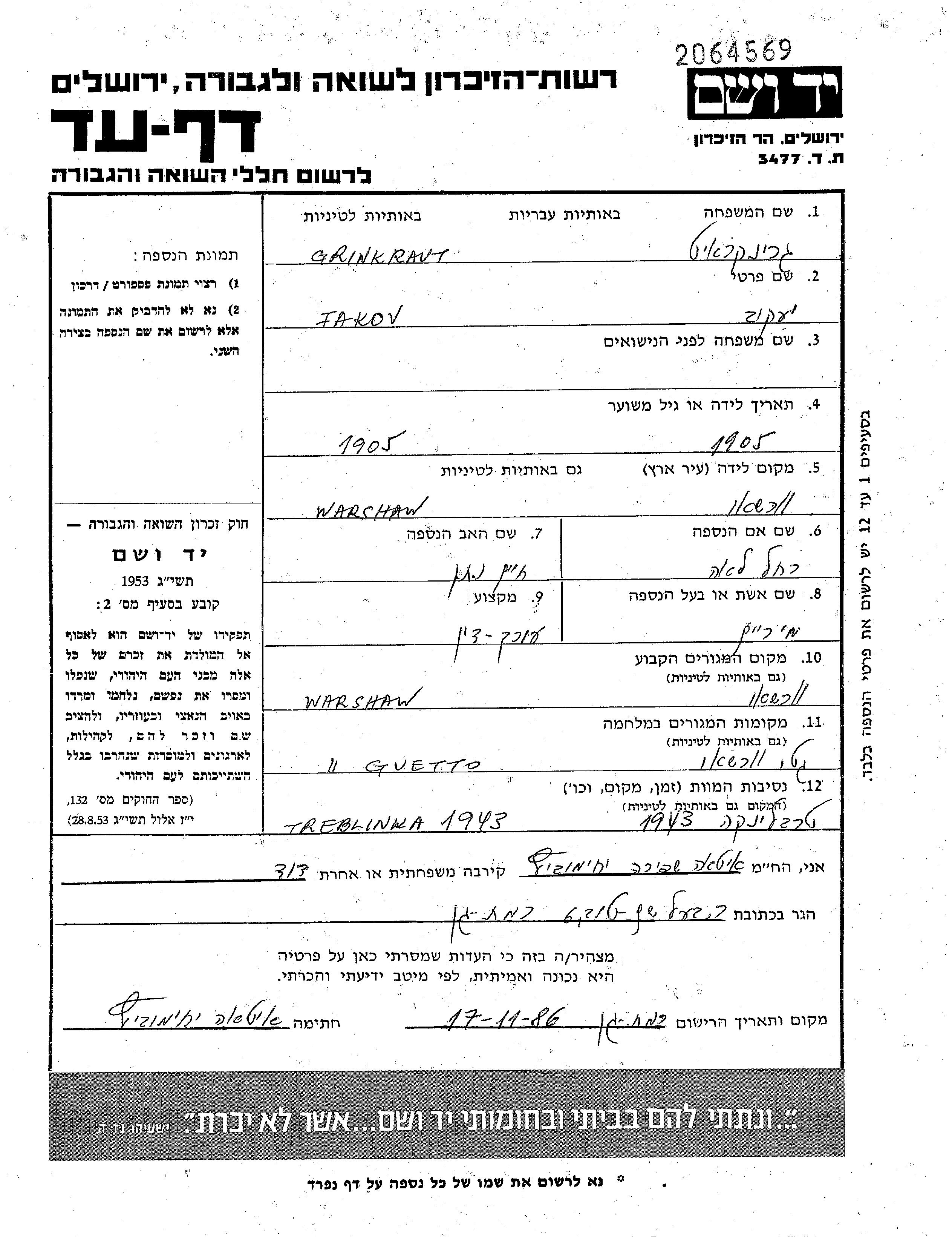 גרינקראוט Jakov 1905 Warszawa, פולין דף-עד