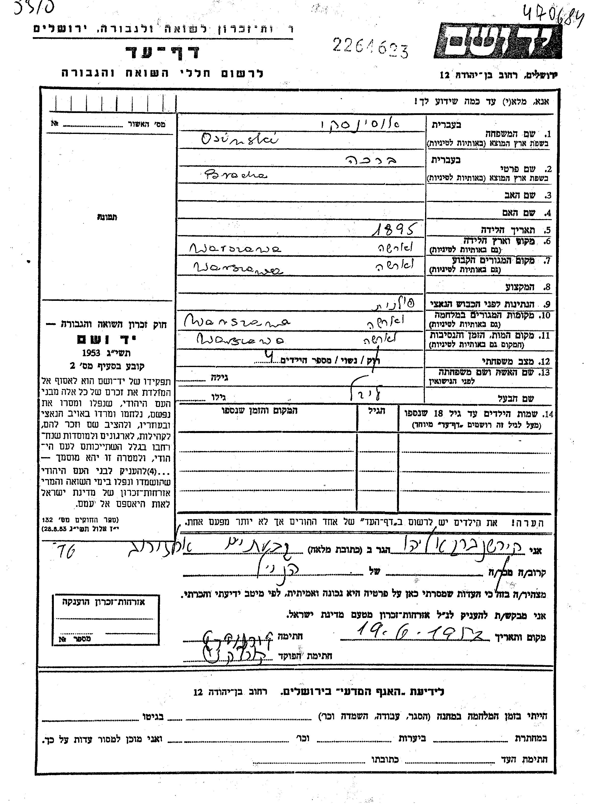 אוסינסקי Bracha 1895 Warszawa, פולין דף-עד