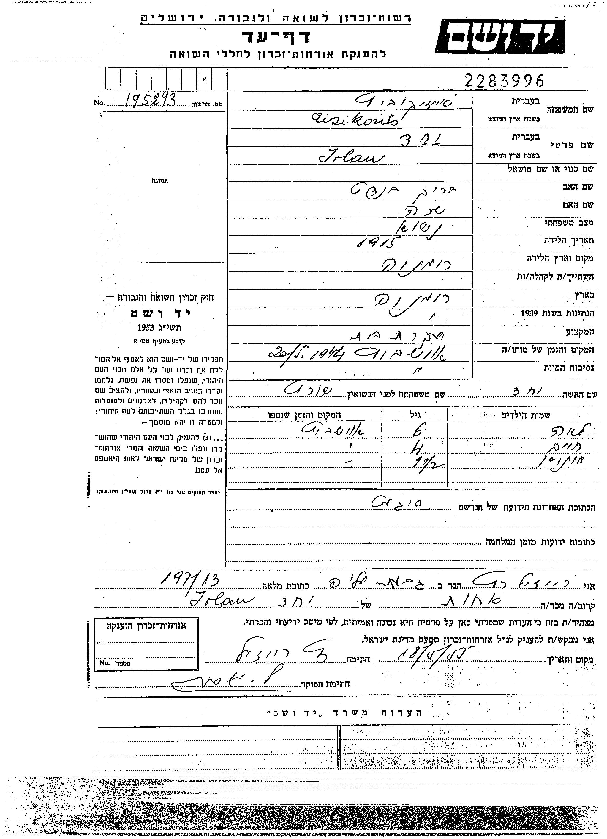 יד ושם - המפעל להנצחת השמות בדפי עד