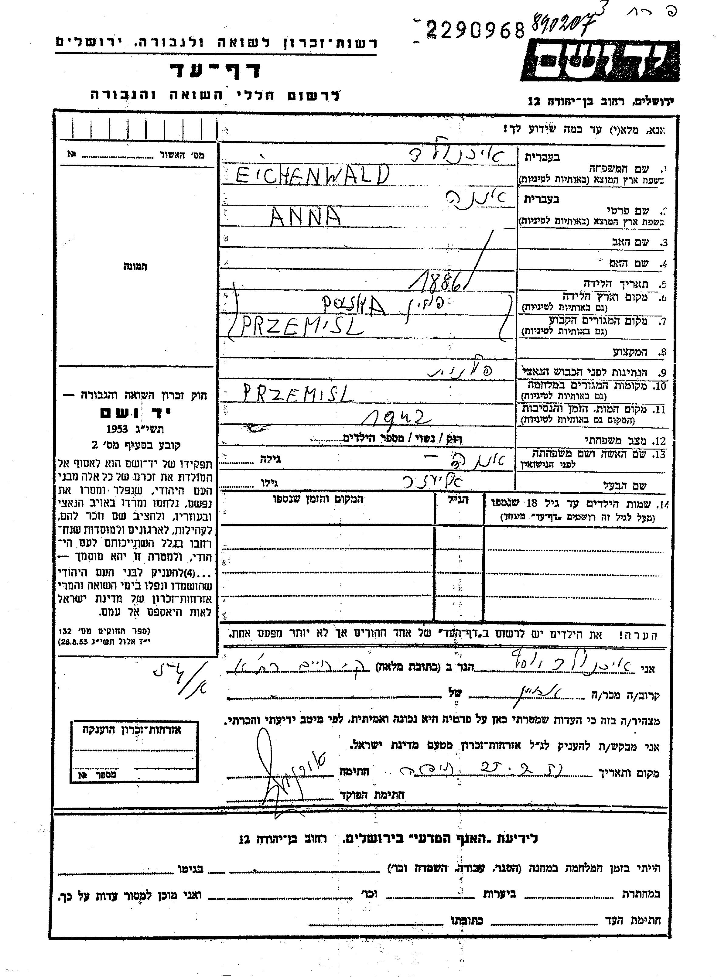 Eichenwald אנה 1886 Przemysl, פולין דף-עד
