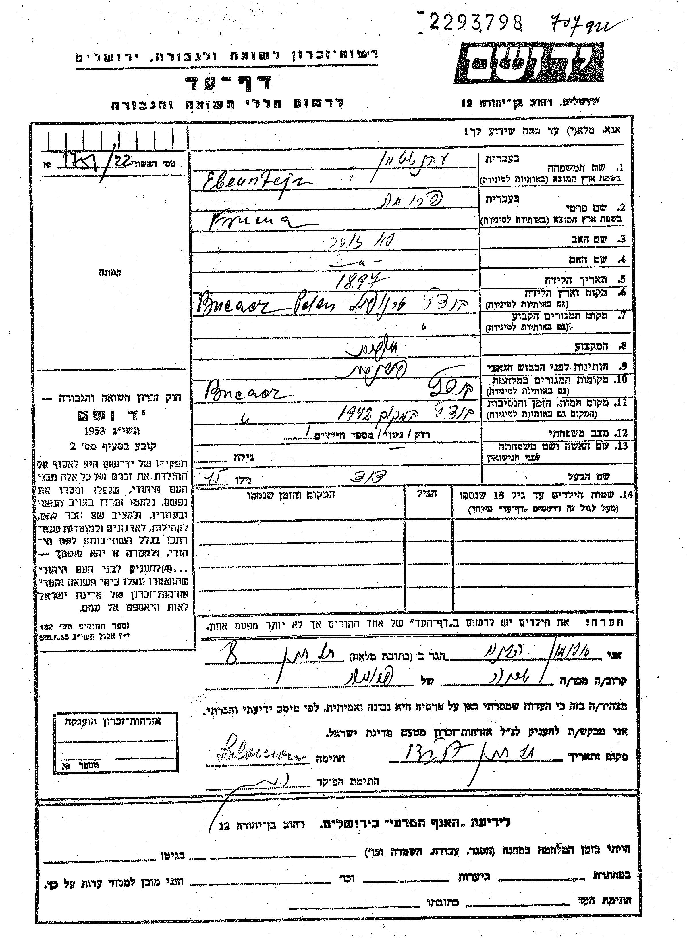 פרומה Ebensztejn נולדה בBuczacz שבפולין בשנת 1897. היא היתה תופרת ונשואה לDawid. לפני מלחמת העולם השניה התגוררה בBuczacz שבפולין. בזמן המלחמה היא היתה בBuczacz שבפולין. פרומה נרצחה בשואה. מקום המוות: Buczacz שבפולין בשנת 1942.