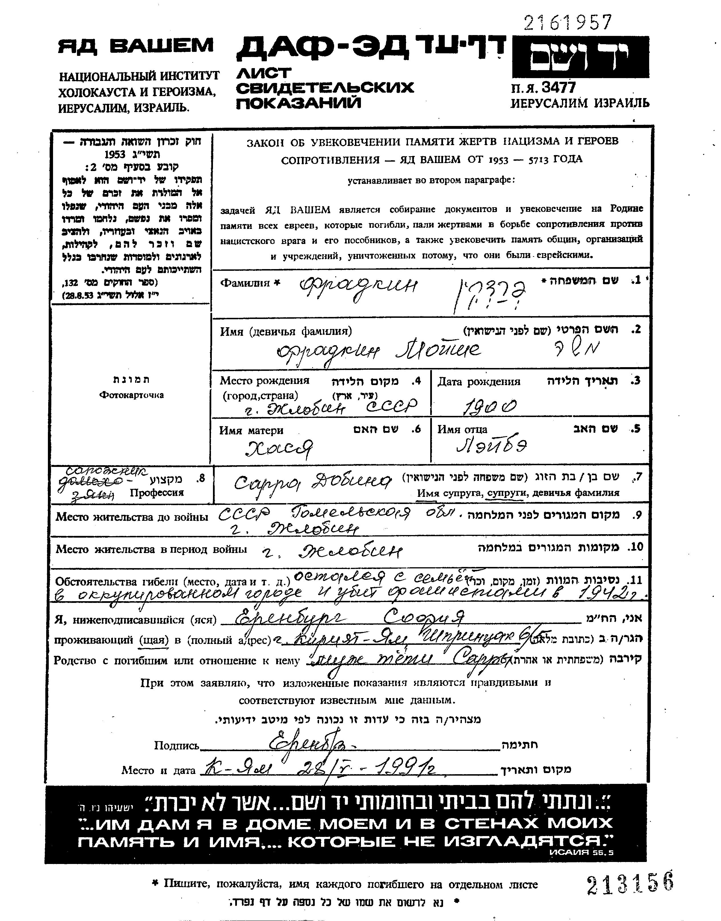 פרדקין Moishe 1900 Zhlobin, ביאלורוסיה (ברה"מ) דף-עד
