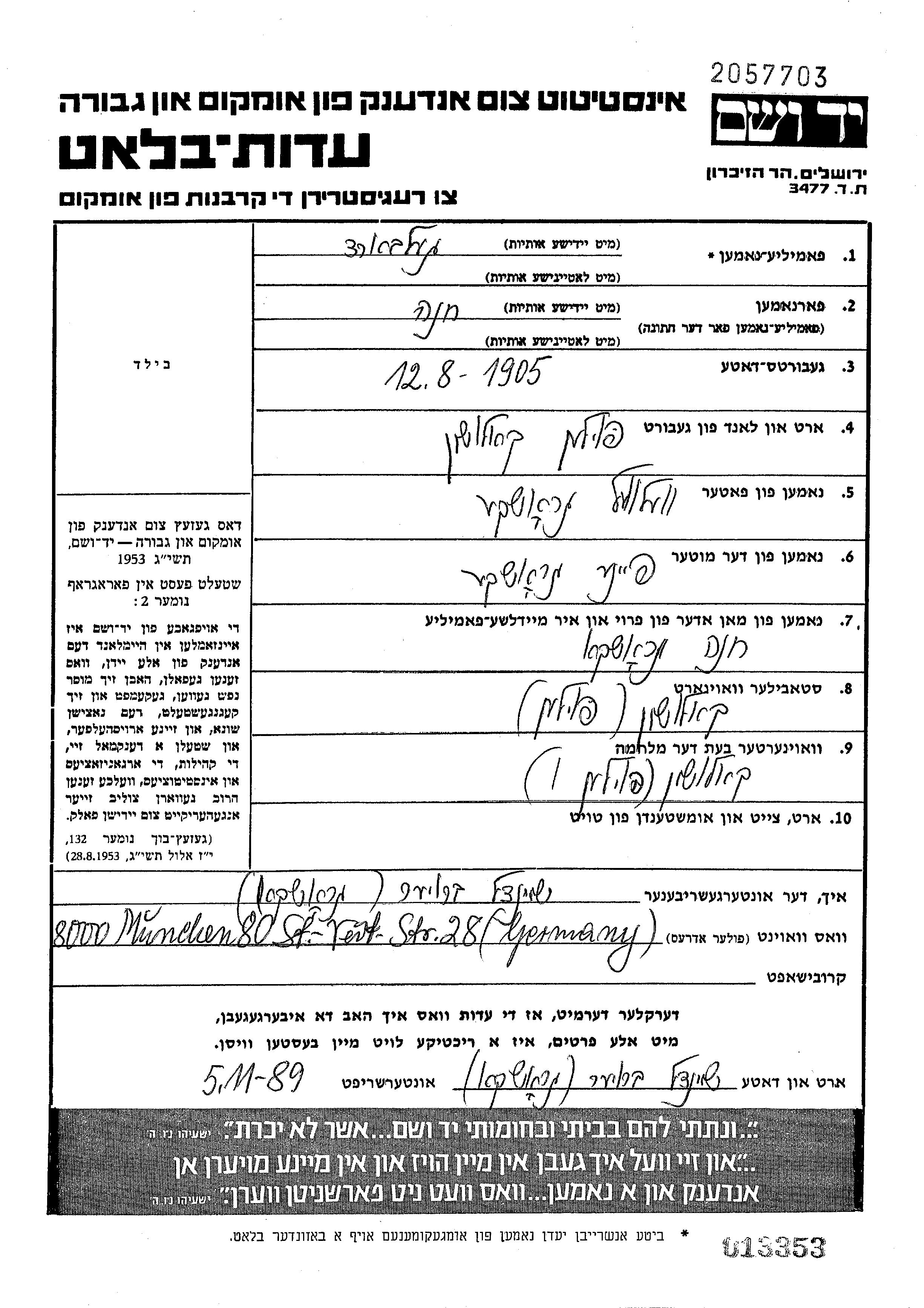 חיפוש שם מוסר דף העד. חיפוש לפי כל שם פרטי, כולל כינוי או שם חיבה