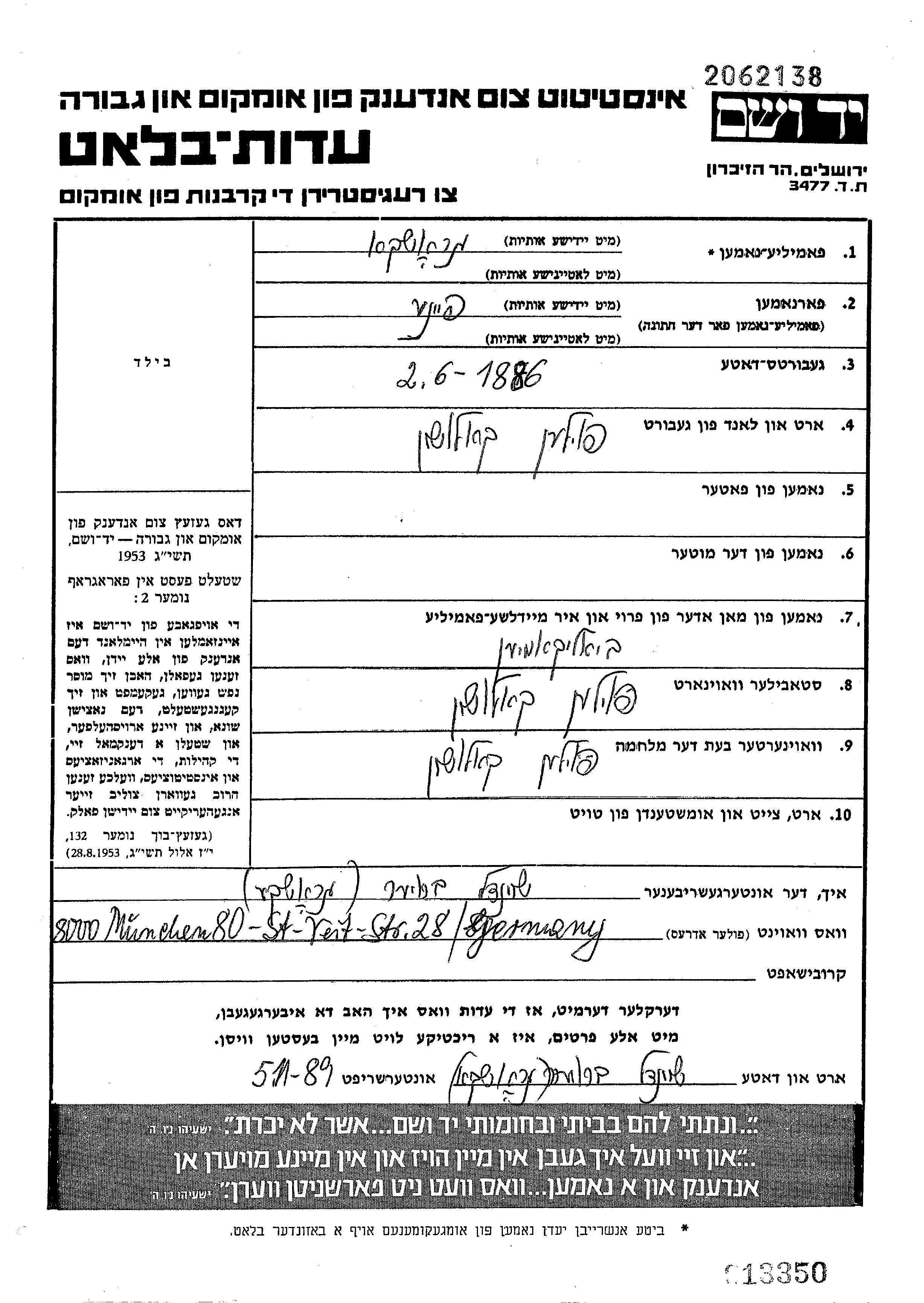 Faine Groshka לבית Bialikamien נולדה בKaluszyn שבפולין בשנת 1886. היא היתה נשואה לVelvl זאב. לפני מלחמת העולם השניה התגוררה בKaluszyn שבפולין. בזמן המלחמה היא היתה בKaluszyn שבפולין. היא נרצחה בשואה.