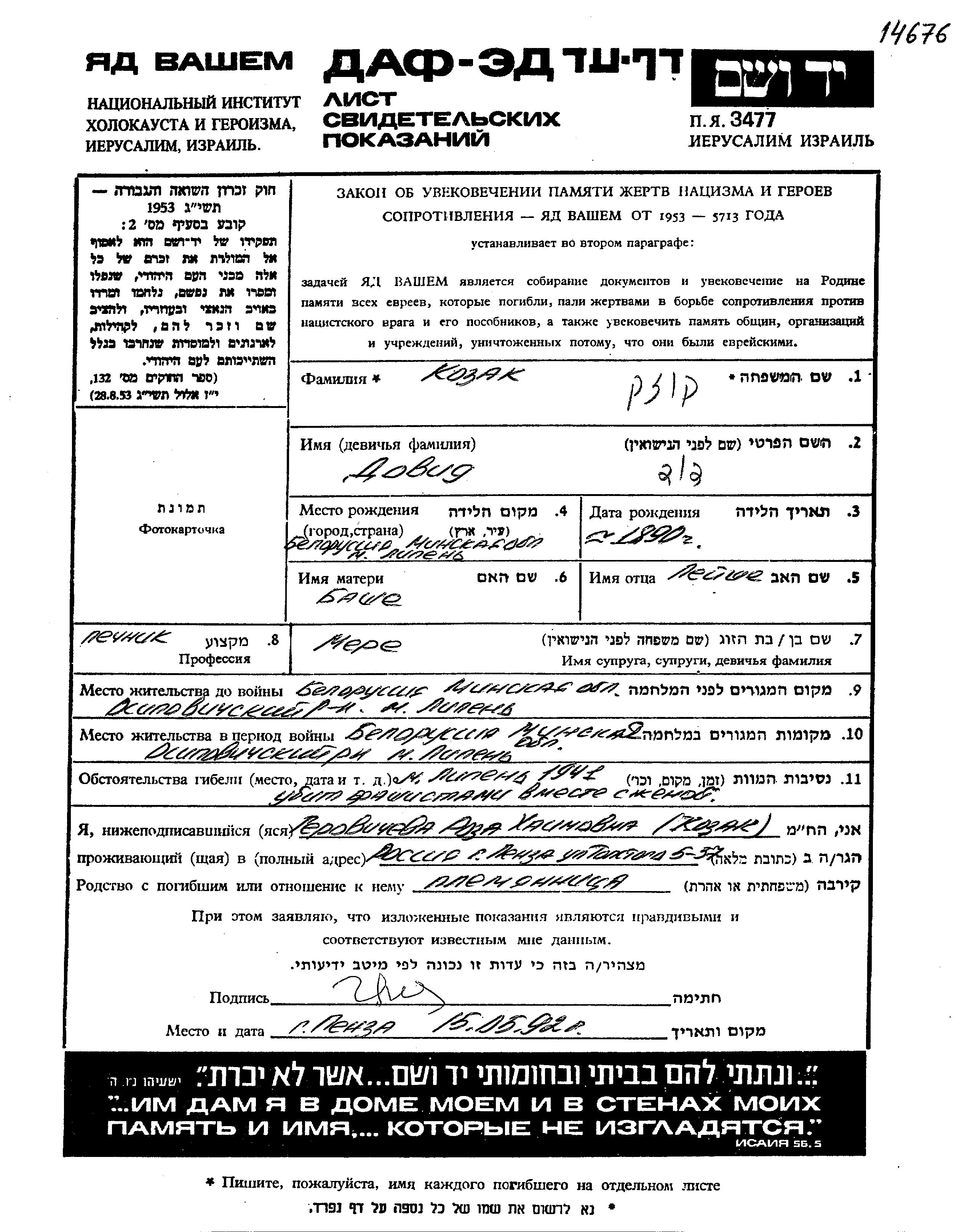 Kozak Dovid 1890 Lipen, ביאלורוסיה (ברה"מ) דף-עד