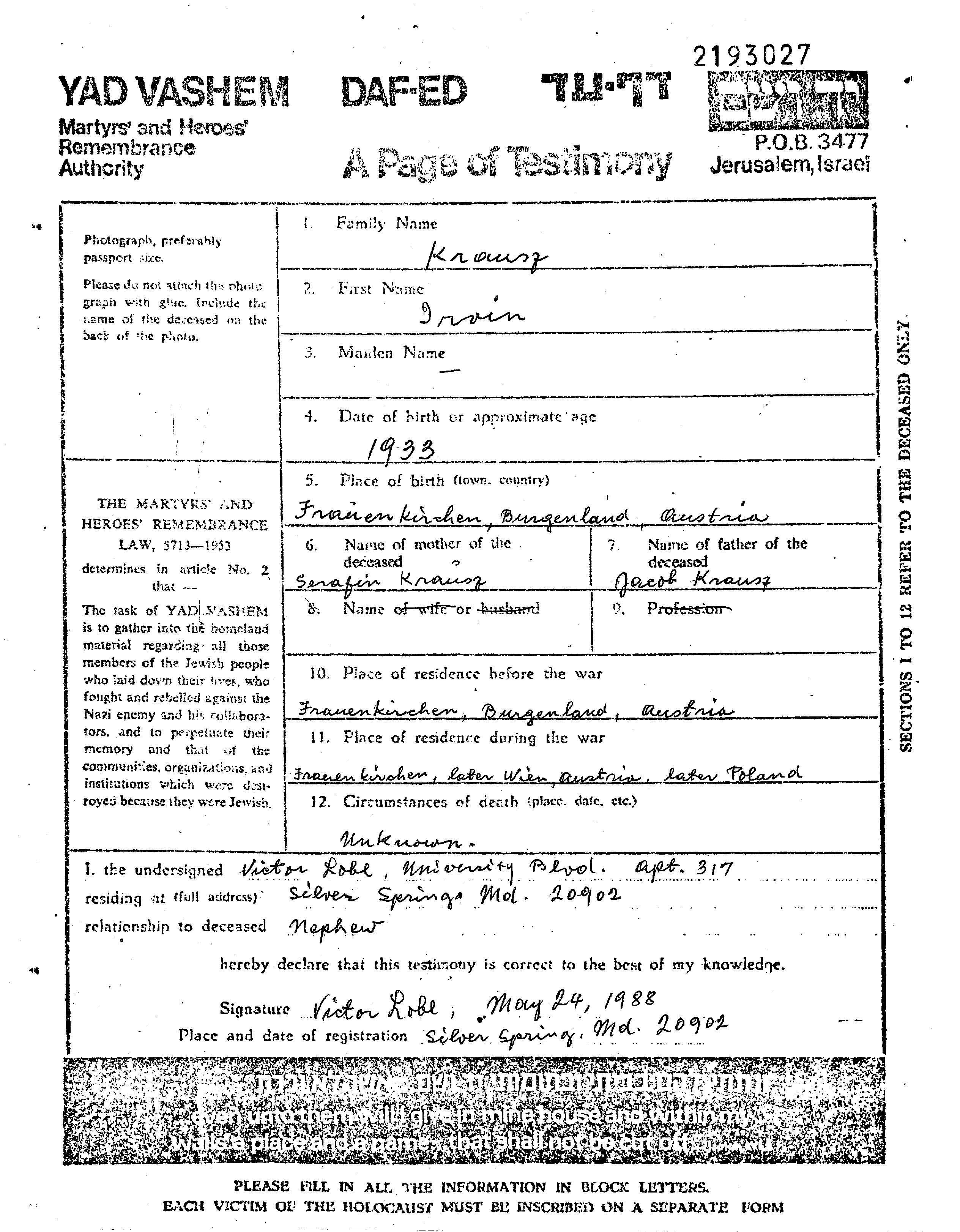 חיפוש שם מוסר דף העד. חיפוש לפי כל שם פרטי, כולל כינוי או שם חיבה
