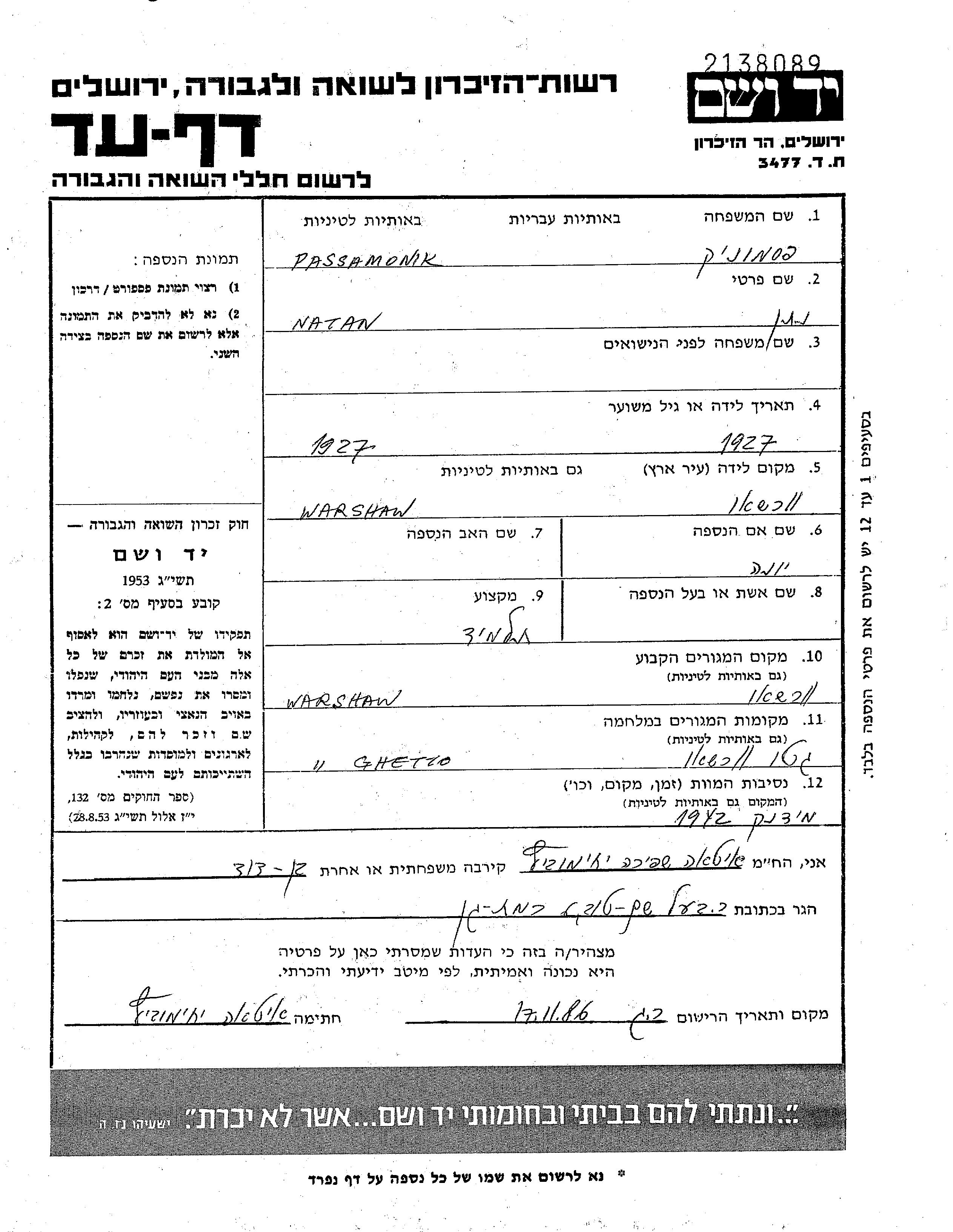 חיפוש שם מוסר דף העד. חיפוש לפי כל שם פרטי, כולל כינוי או שם חיבה