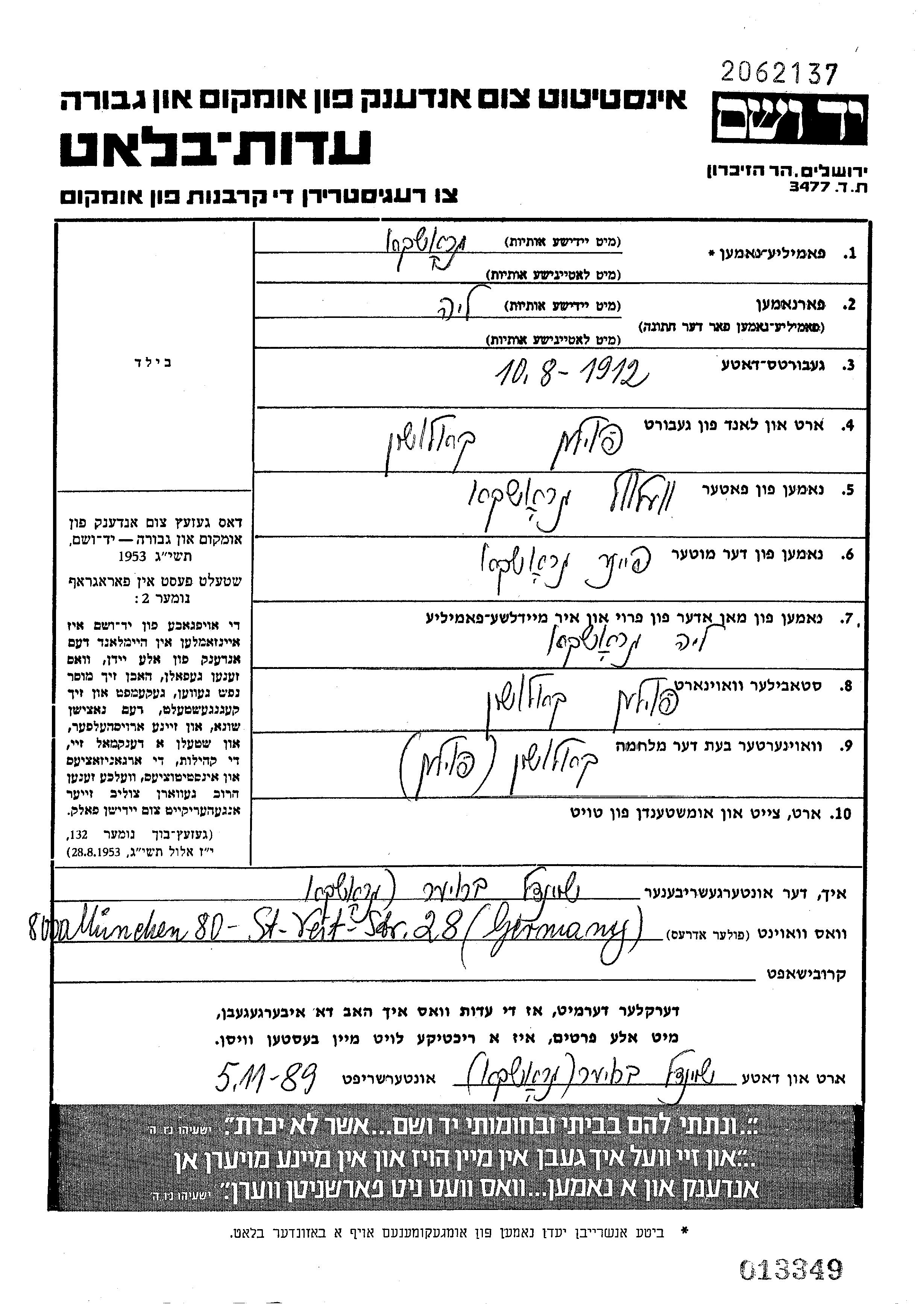 יד ושם - המפעל להנצחת השמות בדפי עד