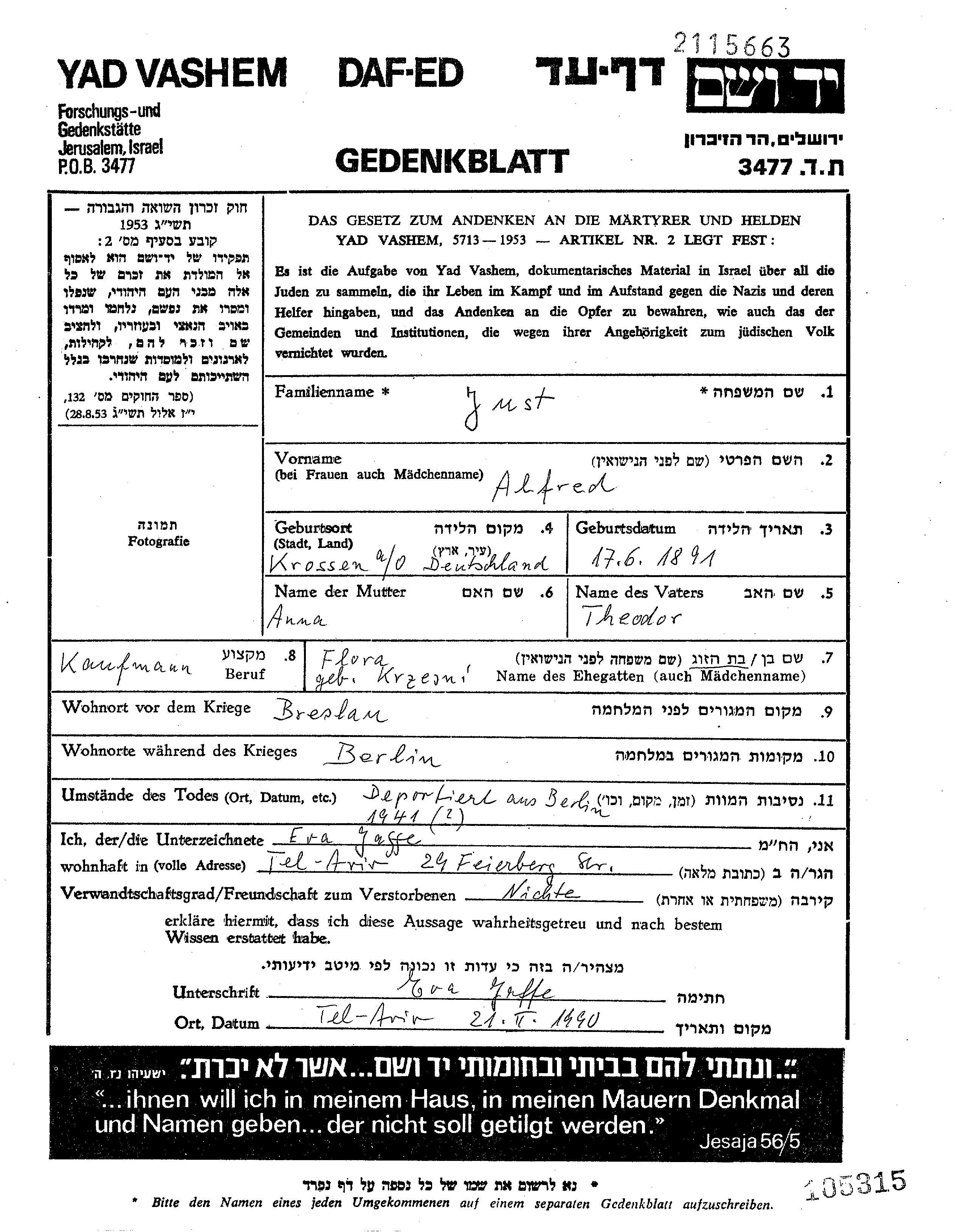יד ושם - המפעל להנצחת השמות בדפי עד