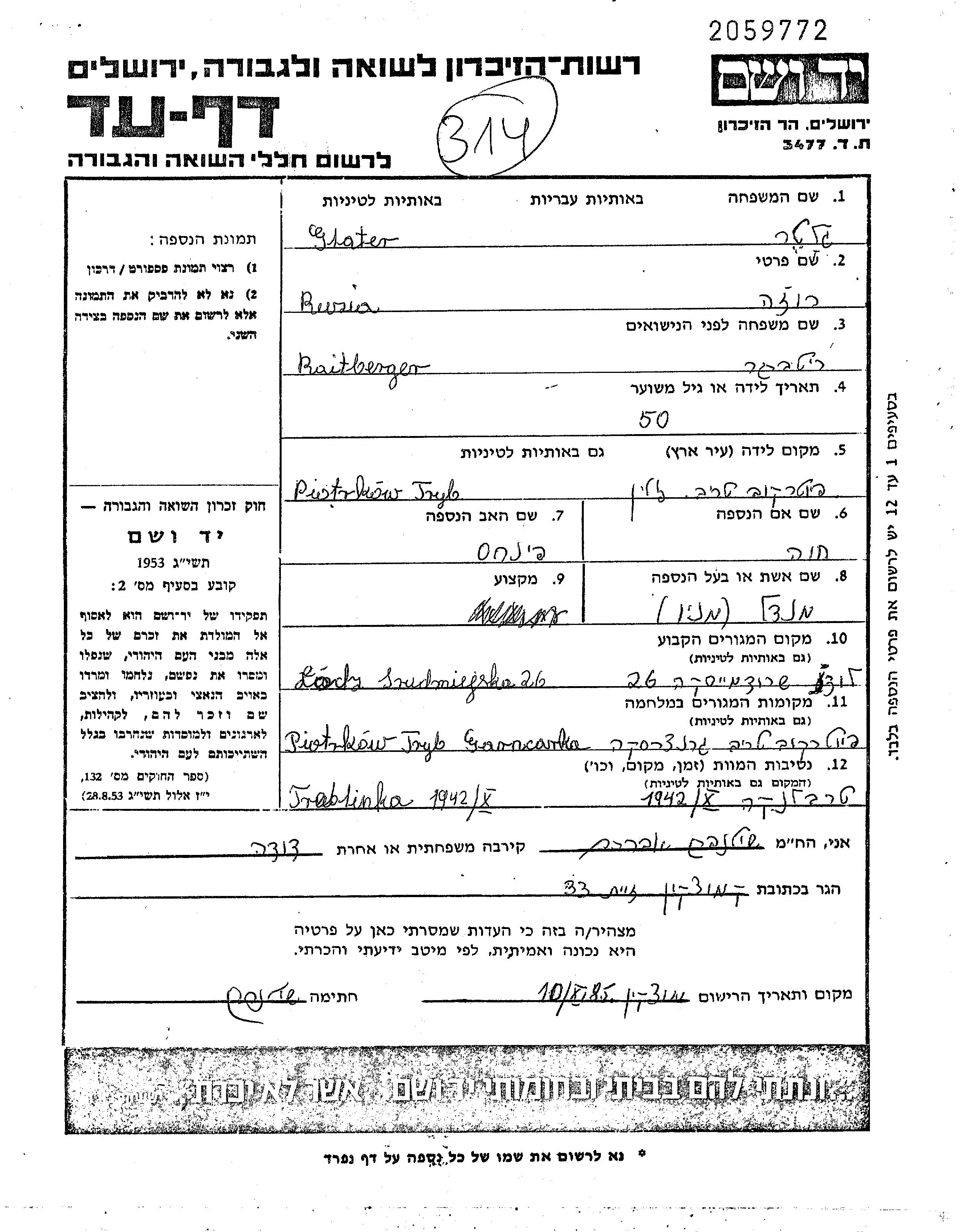 יד ושם - המפעל להנצחת השמות בדפי עד