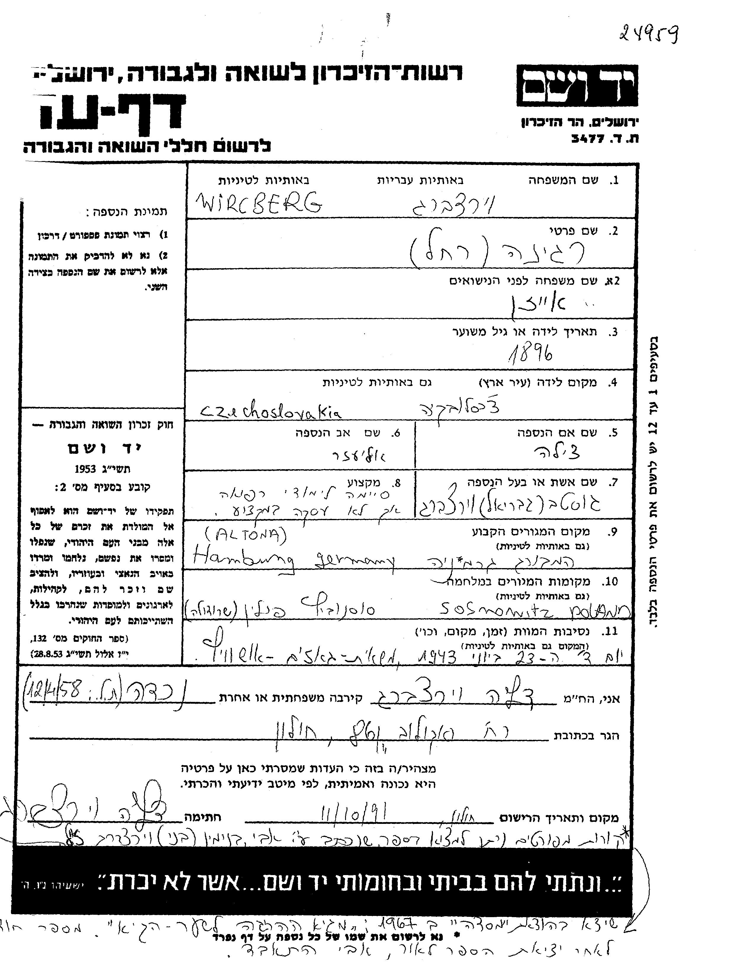 Wircberg רחל רגינה 1896 Hamburg, גרמניה דף-עד