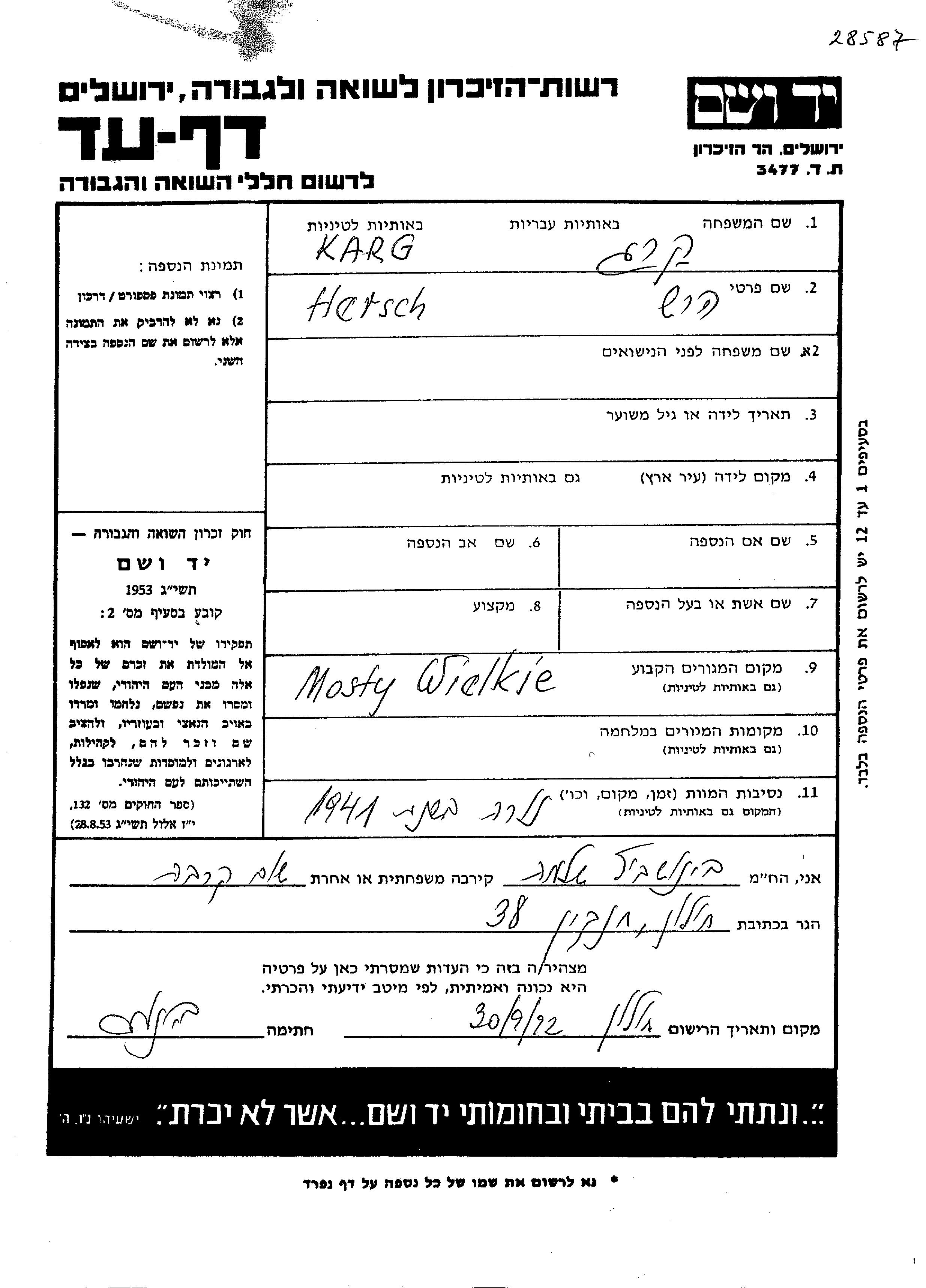 חיפוש שם מוסר דף העד. חיפוש לפי כל שם פרטי, כולל כינוי או שם חיבה