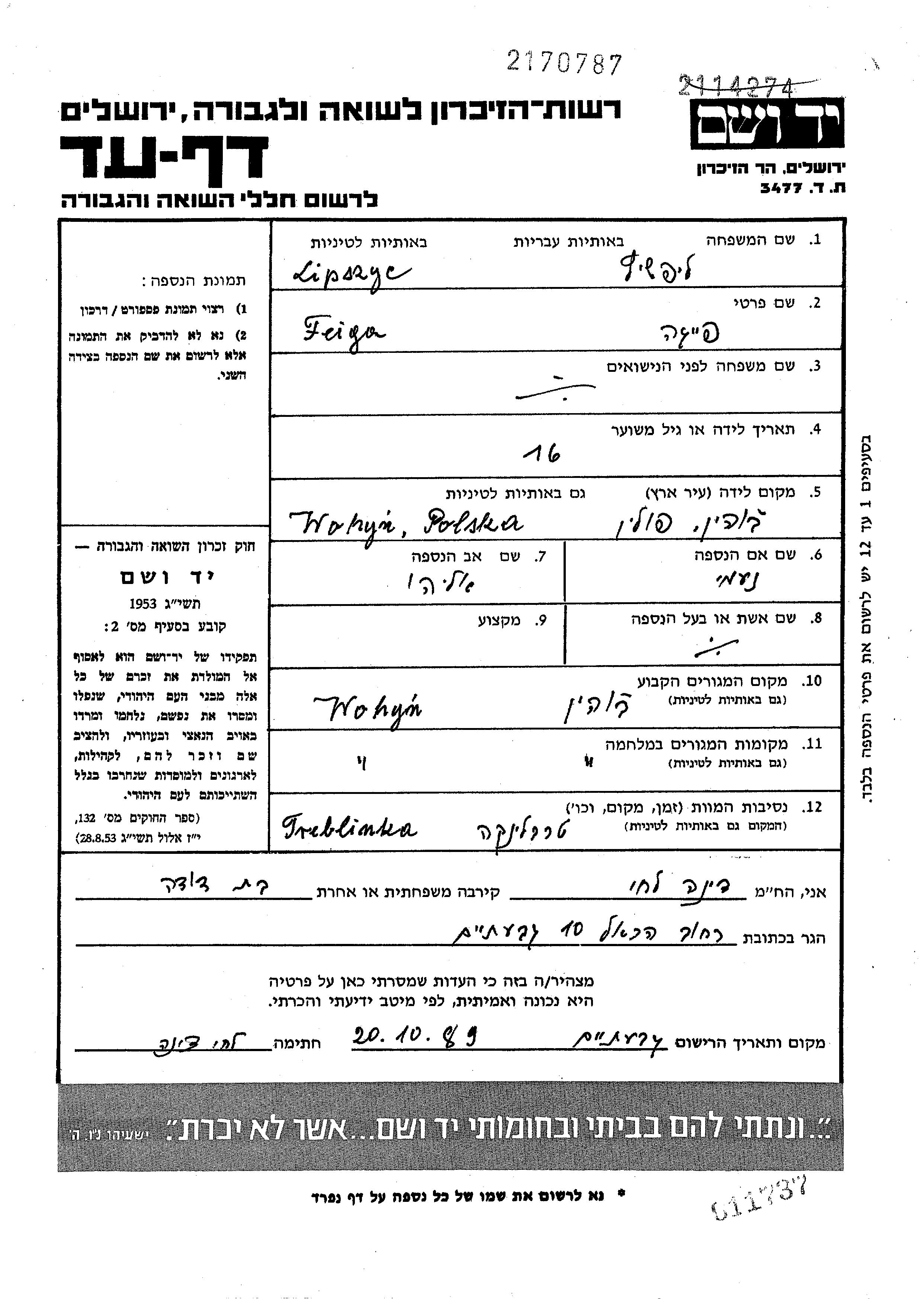 Lipszyc פייגה Wohyn, פולין דף-עד