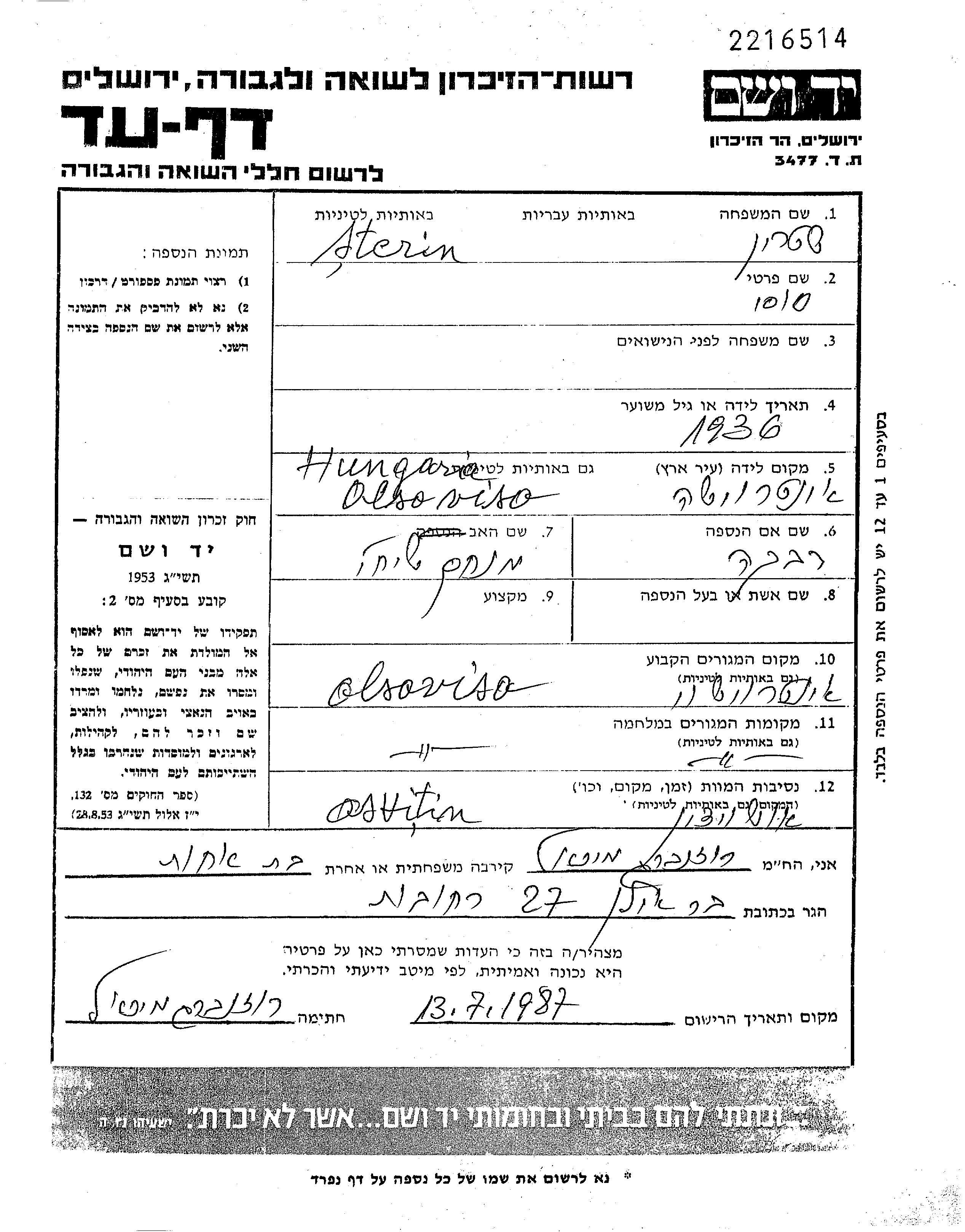 Susi שטרן נולדה בAlsoviso שברומניה בשנת 1936 למנחם וRifca לבית רוזנברג. היא היתה ילדה. לפני מלחמת העולם השניה התגוררה בAlsoviso שברומניה. בזמן המלחמה היא היתה בAlsoviso שברומניה. היא נרצחה בשואה. מקום המוות: Auschwitz שבפולין.